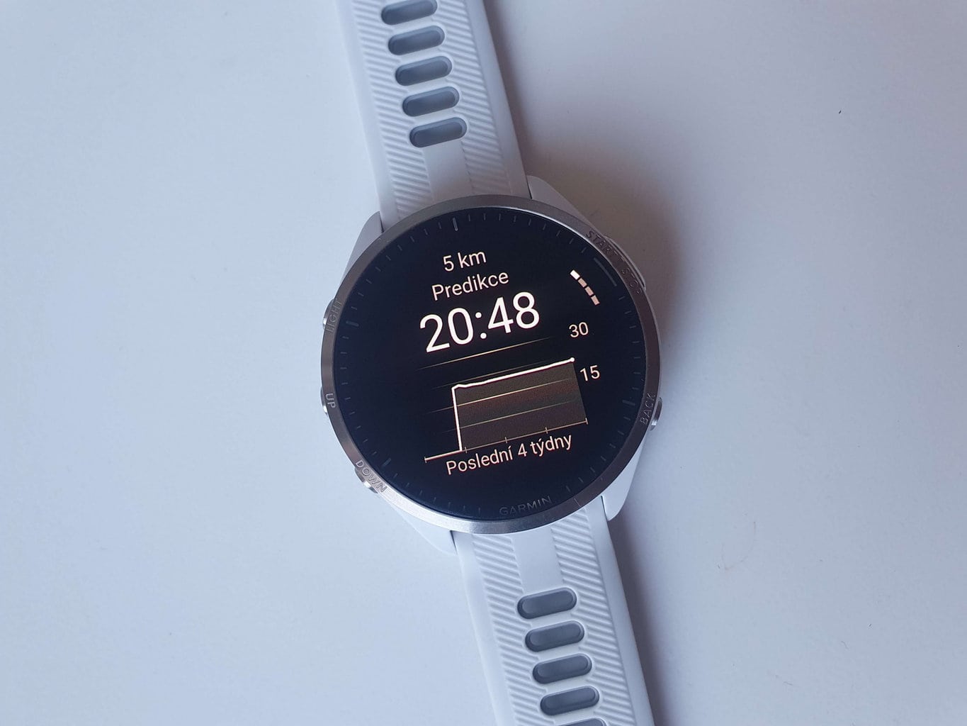 Przewidywanie osiągów wykorzystuje długoterminowe wyniki treningu i rozwój wartości VO2 max. W ten sposób zegarek szacuje czasy dla tras o długości 5 km, 10 km, a także półmaratonu i maratonu. Każdej z tych prognoz towarzyszy wykres, dzięki któremu można zobaczyć, jak przewidywany wynik zmienia się w czasie.