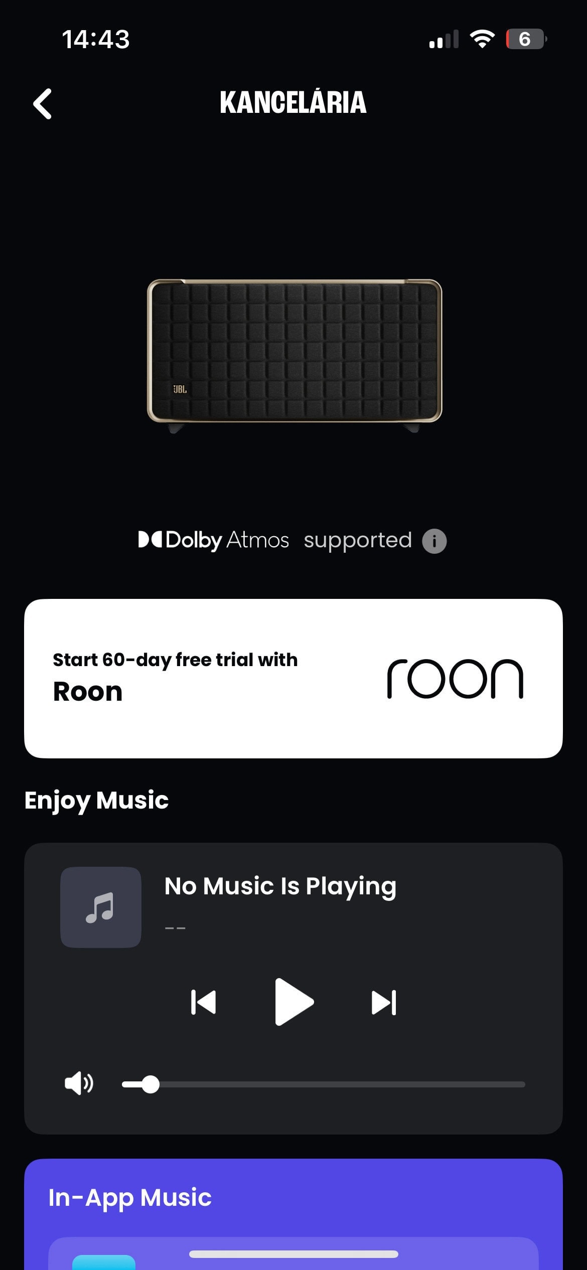 W aplikacji JBL One możesz w prosty sposób podłączyć głośnik do sieci Wi-Fi, a następnie skonfigurować asystentów głosowych, którym poświęcę więcej uwagi w dalszej części. Nie brakuje też przejrzystych opcji do obsługi poszczególnych usług streamingowych i technologii. Ponadto, bezpośrednio w aplikacji można sterować aktualnie odtwarzaną muzyką (zmieniać głośność lub przełączać utwory na poprzednie i następne).