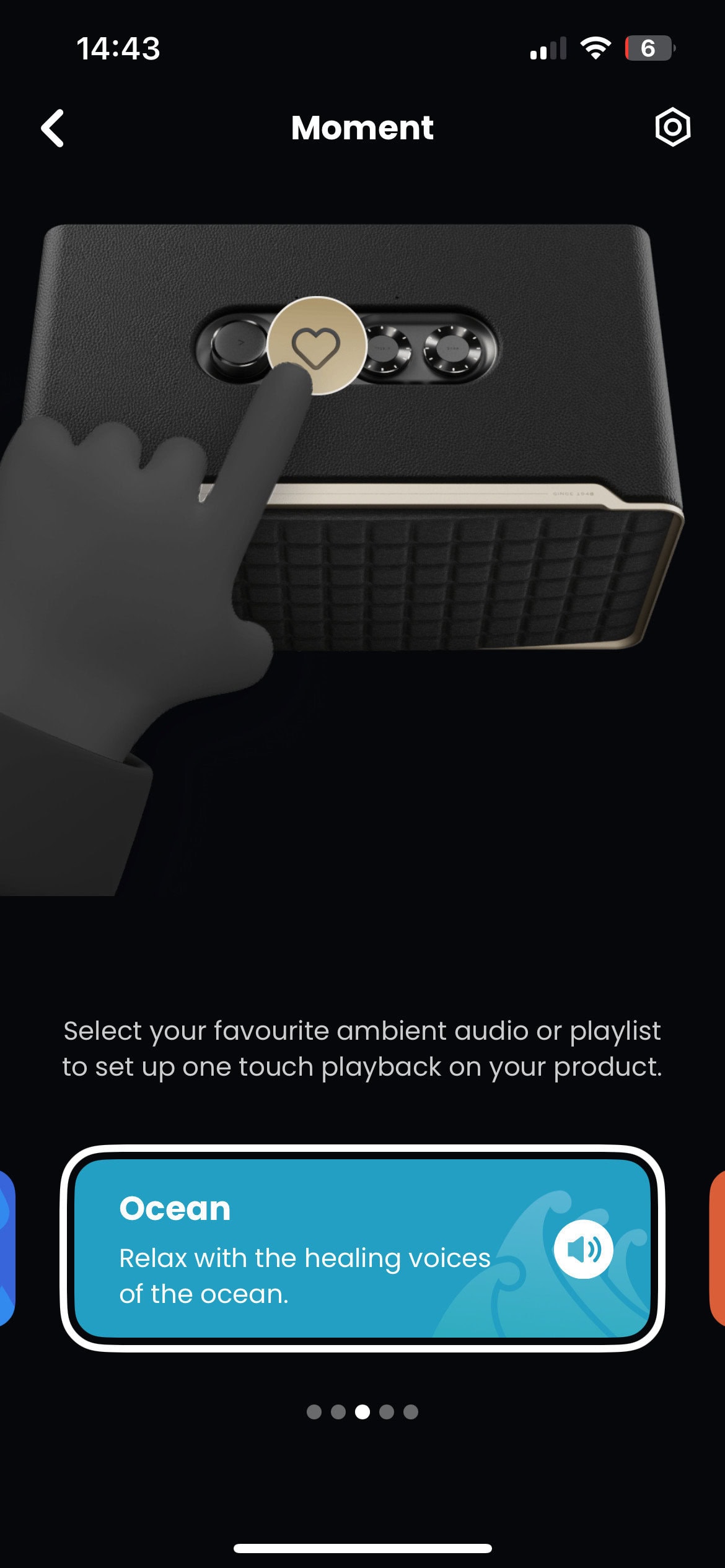 Nie zabrakło również opcji personalizacji przycisku z ikoną serca, który znajduje się bezpośrednio na głośniku. Do wyboru jest kilka dostępnych playlist – osobiście szczególnie polubiłem tę, która przypomina dźwięk padającego deszczu. Możesz jednak także wybrać własną playlistę za pośrednictwem obsługiwanych usług streamingowych lub technologii bezprzewodowych.