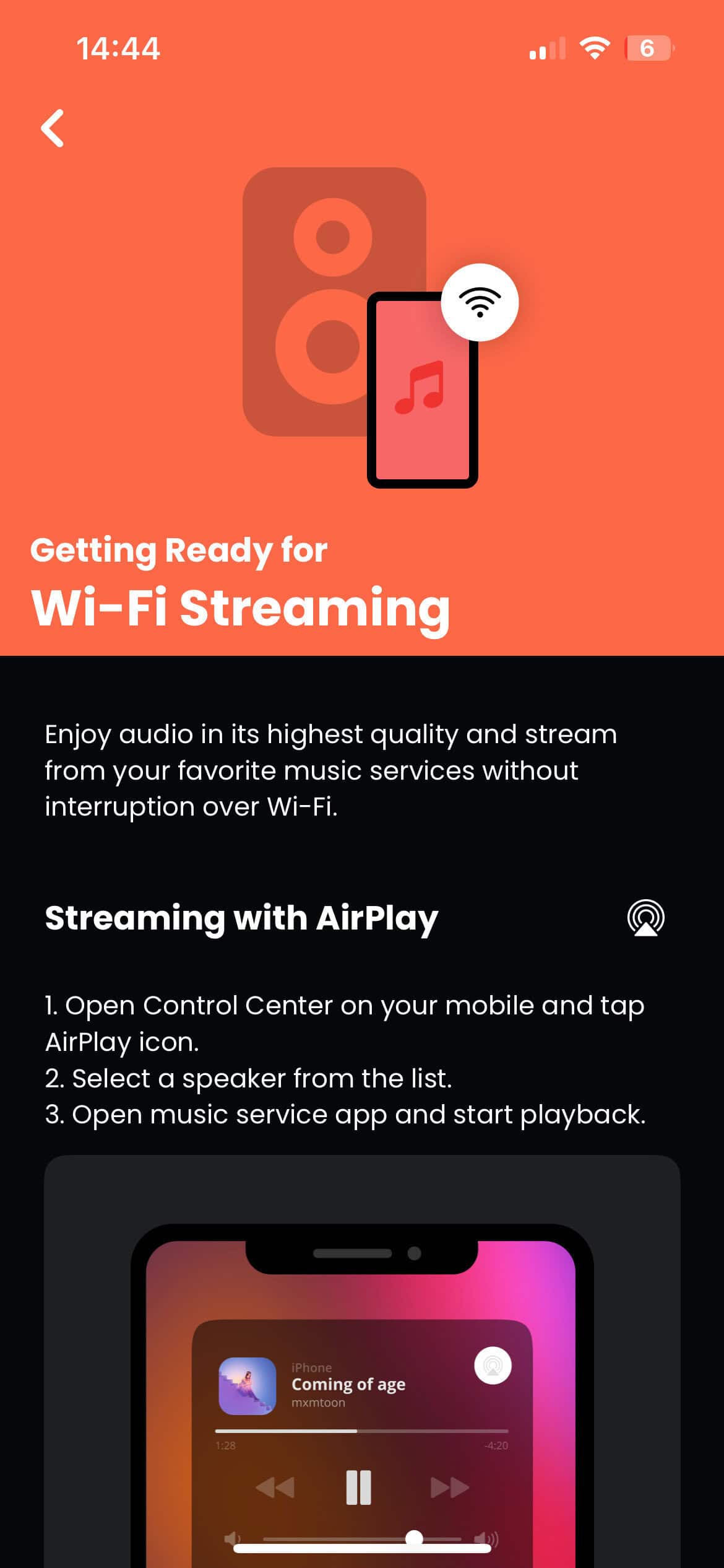PartyTogether działa zarówno w standardowym trybie Bluetooth, jak i w sytuacji, gdy podczas odtwarzania przełączysz się na AirPlay. Zalecam jednak, aby przełączając się z trybu Bluetooth PartyTogether na AirPlay, wybrać jako główny właśnie ten sam głośnik (aby nadal móc nim sterować jako głównym). W przeciwnym razie obsługa może stać się nieco mniej intuicyjna.