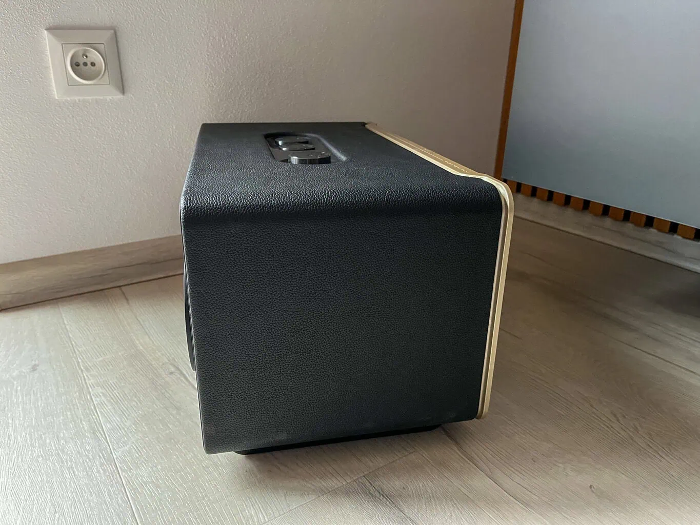 Osobiście muszę podkreślić, że w przypadku obu tych głośników przewód zasilający nieco psuje ogólny design. Dlatego polecam umieścić urządzenie w taki sposób, aby jak najlepiej ukryć kabel. Alternatywnie można zdecydować się na mniejszy model JBL Authentics 300 z wbudowanym akumulatorem (choć o niższej mocy).