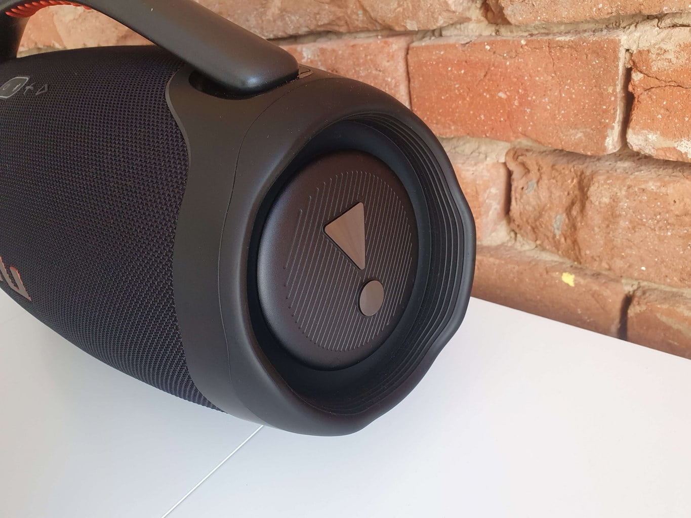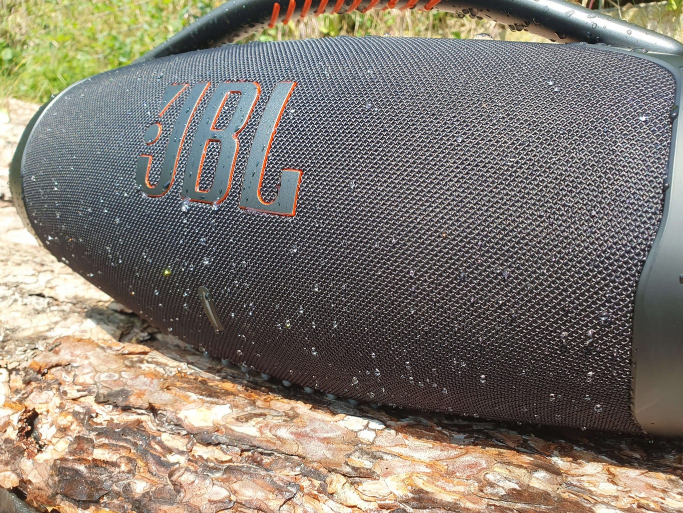 Boombox 3 ma wiele cech wspólnych z modelami takimi jak Xtreme 3 i Flip 6. Mamy na myśli w szczególności dominujące logo z pomarańczowym akcentem, konstrukcję z siatki tekstylnej i stopień ochrony IP67. Możesz więc bezpiecznie korzystać z głośnika przy basenie, na zakurzonym placu budowy lub na plaży.