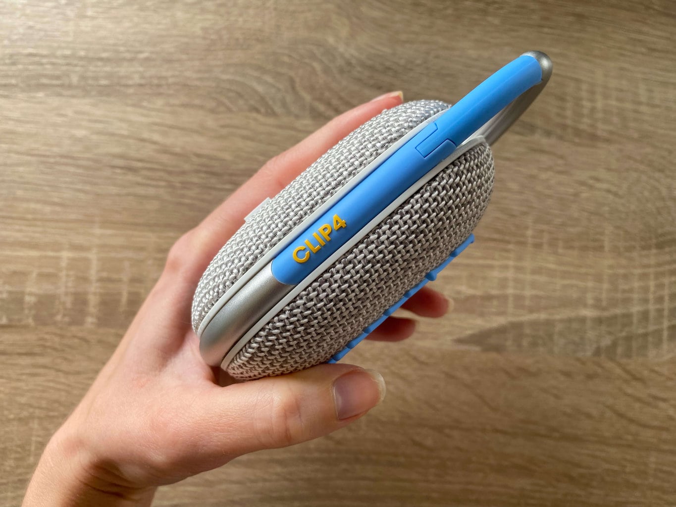 Nie ulega wątpliwości, że JBL Clip 4 to głośnik podróżny. Już od pierwszego spojrzenia przyciąga wzrok praktycznym karabińczykiem, za pomocą którego można go przymocować np. do bagażu. Zadowolą Cię również jego kompaktowe wymiary 13 × 8,6 × 4,6 cm i przyjemna waga 239 gramów. W przeciwieństwie do JBL Clip 3, głośnik nie jest okrągły, ale kwadratowy z zaokrąglonymi rogami. Możliwość przypięcia do plecaka lub zamocowania na kierownicy roweru oferuje JBL Wind 3S.
