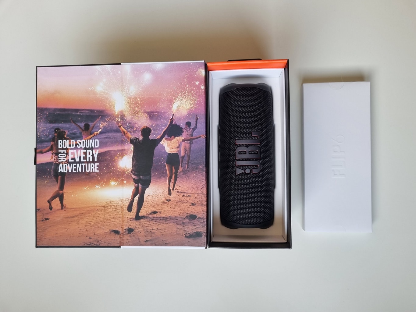 Po otwarciu pierwszą rzeczą, którą zobaczysz, jest małe pudełko oznaczone jako FLIP 6, które zawiera akcesoria: