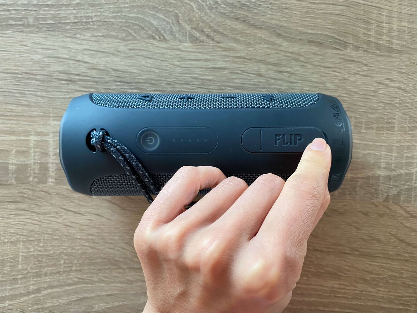 Na obudowie urządzenia znajduje się kilka przycisków do sterowania głośnikiem. Klasyczny przycisk włączania/wyłączania służy do włączania i wyłączania głośnika. Jest też przycisk z motywem Bluetooth, który służy do rozpoczęcia procesu parowania.
