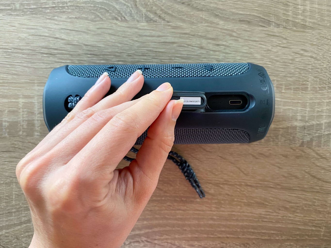Aktualny stan baterii można łatwo sprawdzić bezpośrednio na głośniku za pomocą 5 diod LED. Jeśli świecą się wszystkie, oznacza to 100% naładowania. Jeśli świecą się tylko 3 diody LED, oznacza to 50% naładowania, a jedna dioda LED oznacza poziom 20%. Jednak poziom naładowania baterii będzie znany tylko natychmiast po włączeniu głośnika, później wszystkie diody LED zgasną. Jedyną opcją jest wyłączenie i ponowne włączenie głośnika.