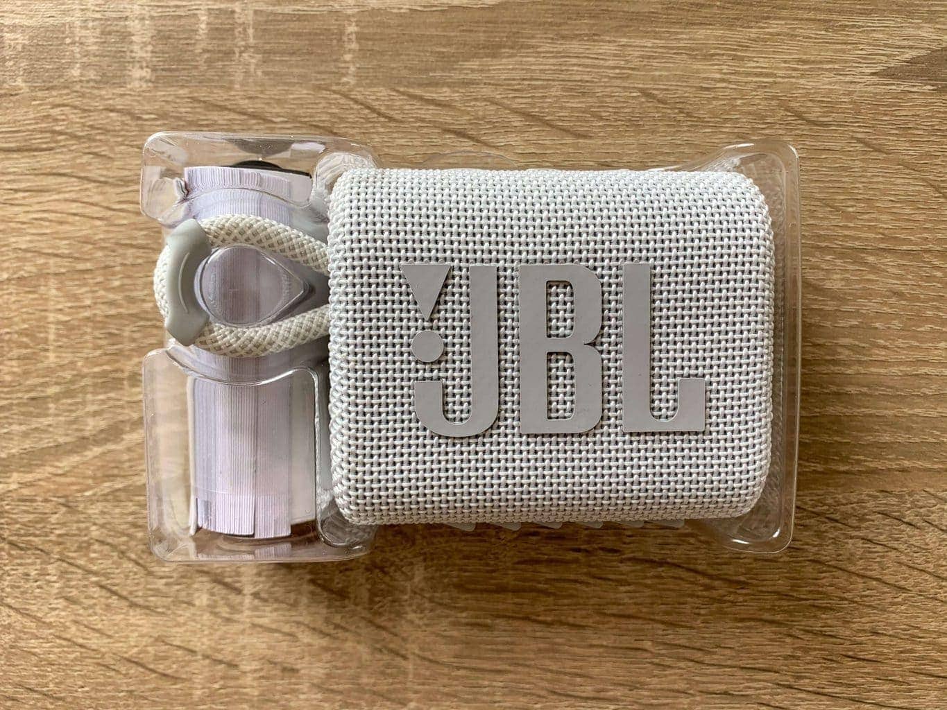 Głośnik Bluetooth JBL Go 3 dotarł do nas w przezroczystej plastikowej obudowie. Na pierwszy rzut oka zaimponował nam swoimi kompaktowymi wymiarami. W końcu całe opakowanie mierzy zaledwie 13×5×9,4 cm i waży 300 gramów.