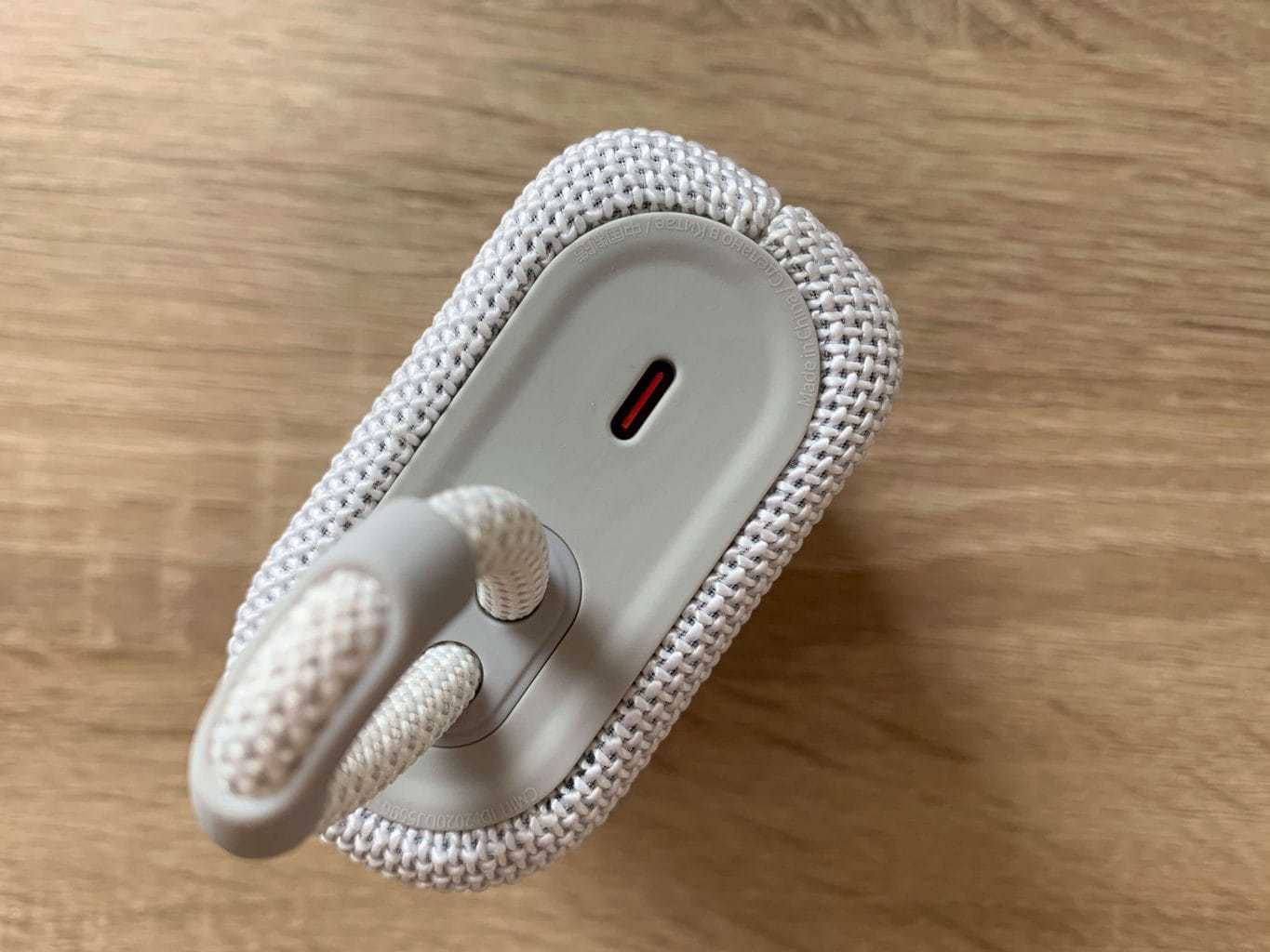 Do ładowania służy kabel dołączony do zestawu. Po stronie ze złączem USB-C wkładamy go do głośnika, po stronie ze złączem USB-A do samego zasilacza. Bateria zostanie naładowana w 100% w około 2,5 godziny. Na obudowie głośnika znajduje się również poręczna dioda LED informująca o konieczności naładowania.