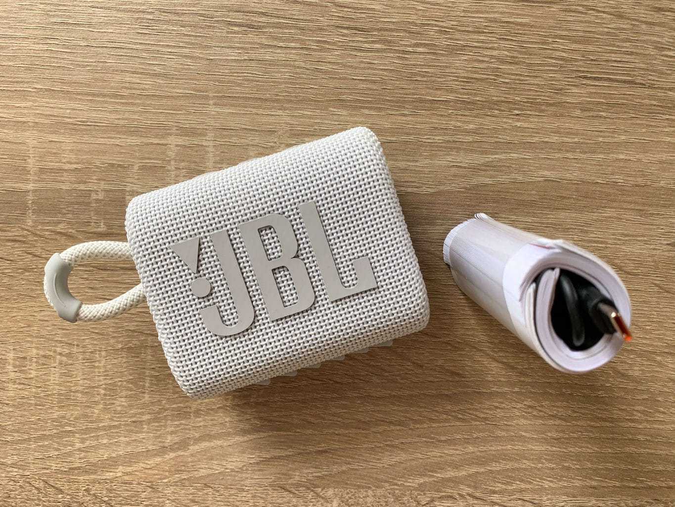 Jak już wspomnieliśmy, JBL Go 3 to naprawdę kompaktowy model, który mieści się w dłoni. Jego wymiary to zaledwie 8,8×7,5×4,1 cm, a dzięki wadze 200 g nie będzie ważył zbyt wiele, gdy jesteś w podróży.