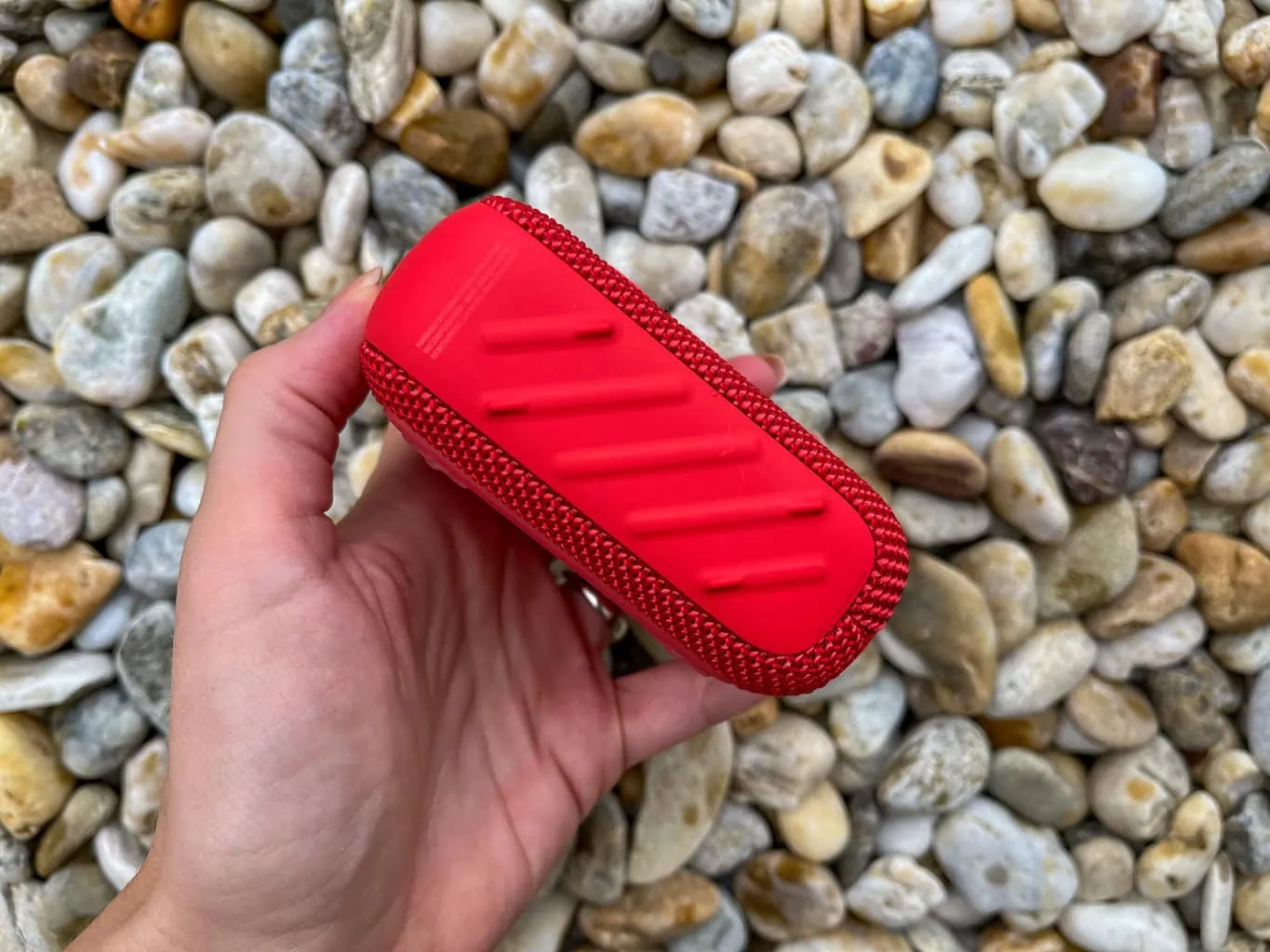 Głośnik doskonale leży w dłoni, a dzięki gumowaniu bardzo dobrze trzyma się różnych powierzchni bez tendencji do ześlizgiwania się. Pętlę można wykorzystać do zawieszenia go na przykład na gałęzi drzewa podczas pikniku w parku lub w lesie. Ponadto sprawdzi się również podczas uprawiania pieszej turystyki: wówczas głośnik można przymocować na przykład do plecaka za pomocą klipsa lub sprzączki.