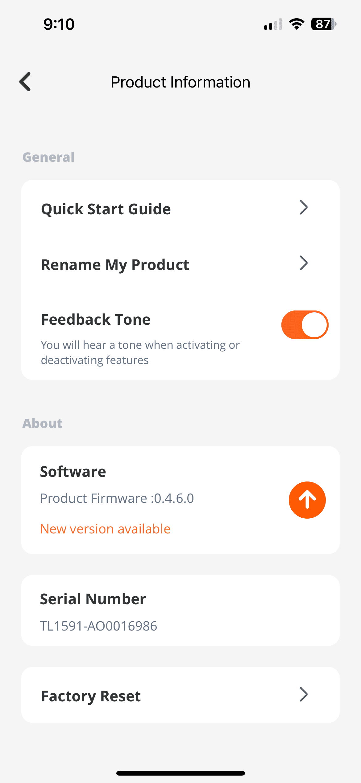 Kolejne sekcje w aplikacji mobilnej obejmują wspomnianą wcześniej opcję podłączenia dwóch głośników w celu stworzenia stereo (czyli iluzji dźwięku przestrzennego). Na końcu znajdują się również ważne informacje o produkcie.