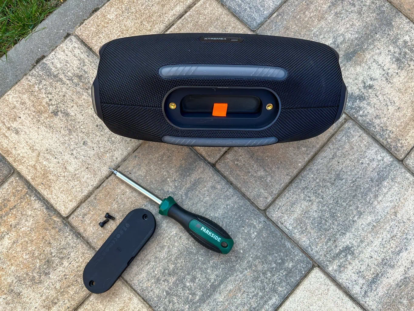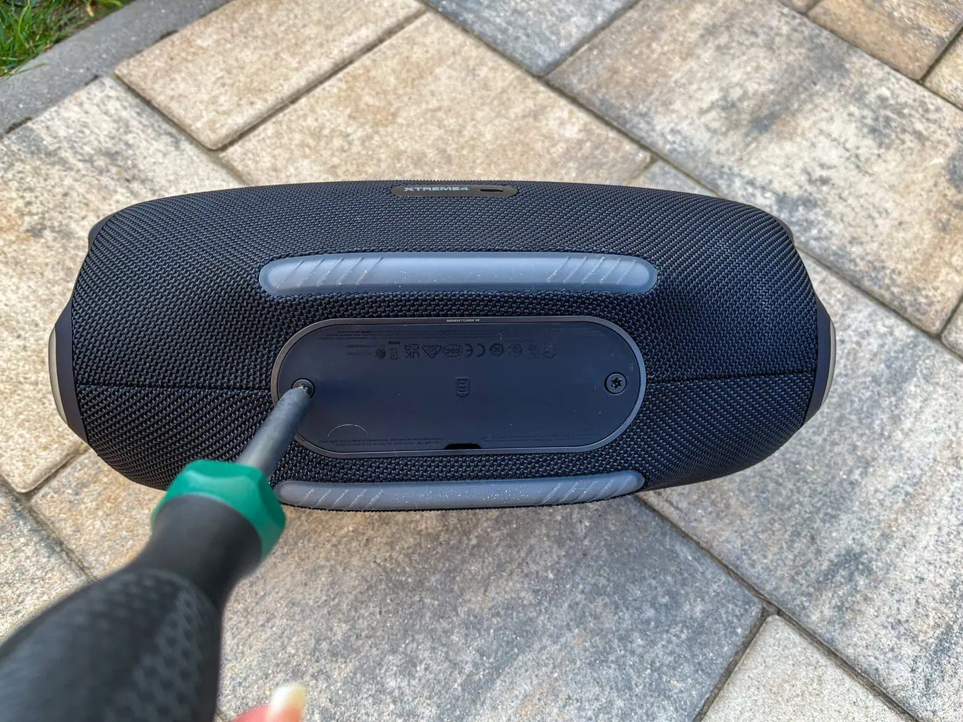 Główną zmianą jest obecność wymiennej baterii. Jeśli więc kupisz dodatkową baterię, możesz w razie potrzeby dokonać szybkiej wymiany. Proces ten jest jednak nieco mozolny, ponieważ aby dostać się do baterii należy odkręcić dwie śruby, co (na przykład w trakcie imprezy) może nie być optymalnym rozwiązaniem. Obecność szybkozłącznej pokrywy (jak w PartyBox Stage 320) miałaby dla mnie większy sens w przypadku tego głośnika.