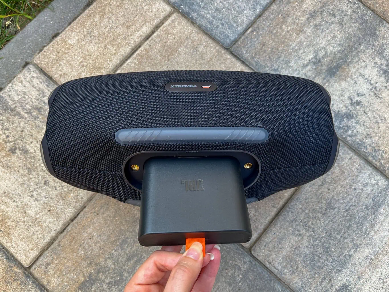 Maksymalny czas pracy baterii wynosi 24 godziny. Dzięki funkcji Playtime Boost, którą można uruchomić w aplikacji mobilnej, czas pracy baterii można wydłużyć o dodatkowe 6 godzin. Głośnik JBL Xtreme 4 jest ponadto wyposażony w wymienną baterię.
