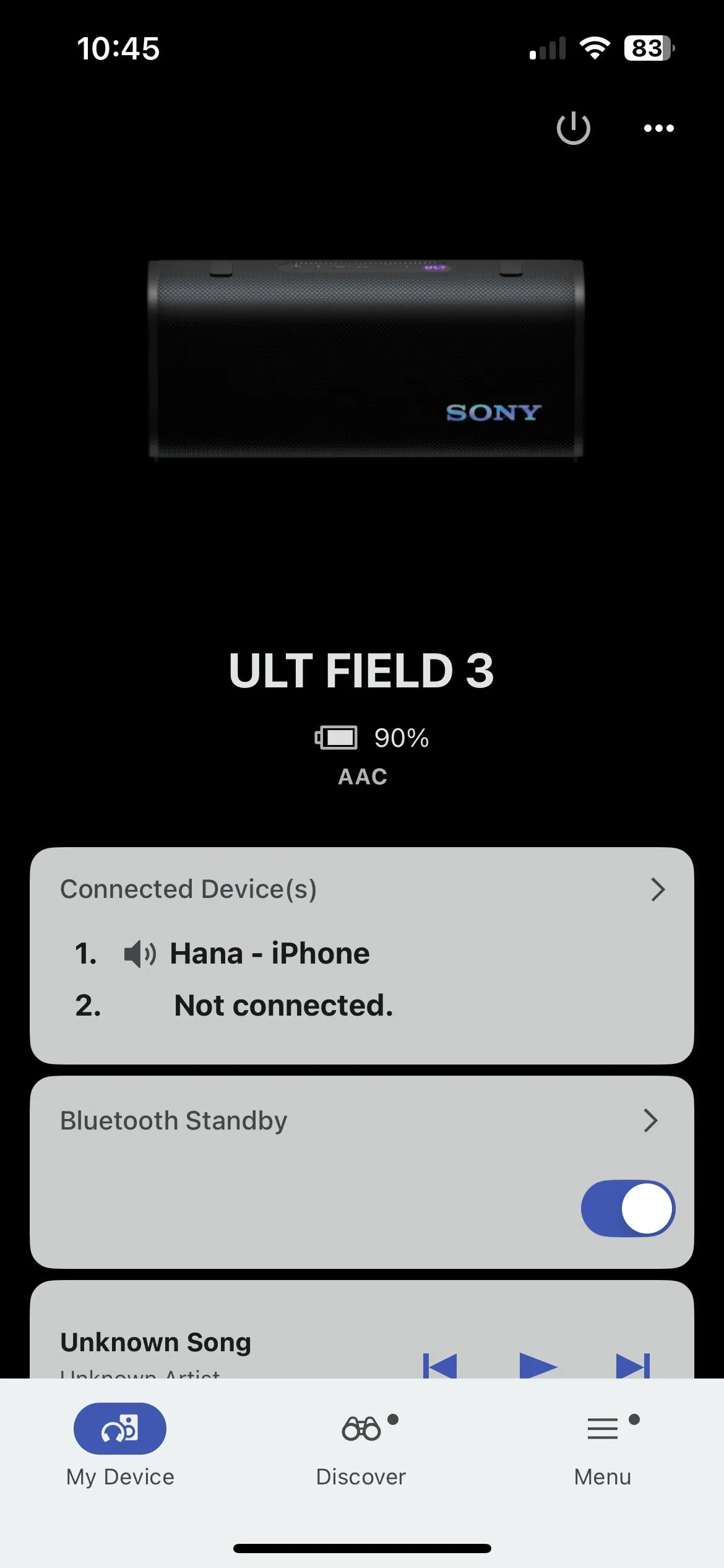 Chociaż głośnik oferuje aplikację mobilną, niektóre funkcje nie do końca mnie przekonały. Na przykład nie udało mi się uruchomić funkcji Bluetooth standby, a tryb Sound Field Optimization nie przyniósł zauważalnej różnicy. Aplikacja pozwala na ustawienie własnego equalizera, niestety wtedy automatycznie wyłącza się tryb ULT. Z własnym equalizerem nie uzyskacie też tak mocnych basów.