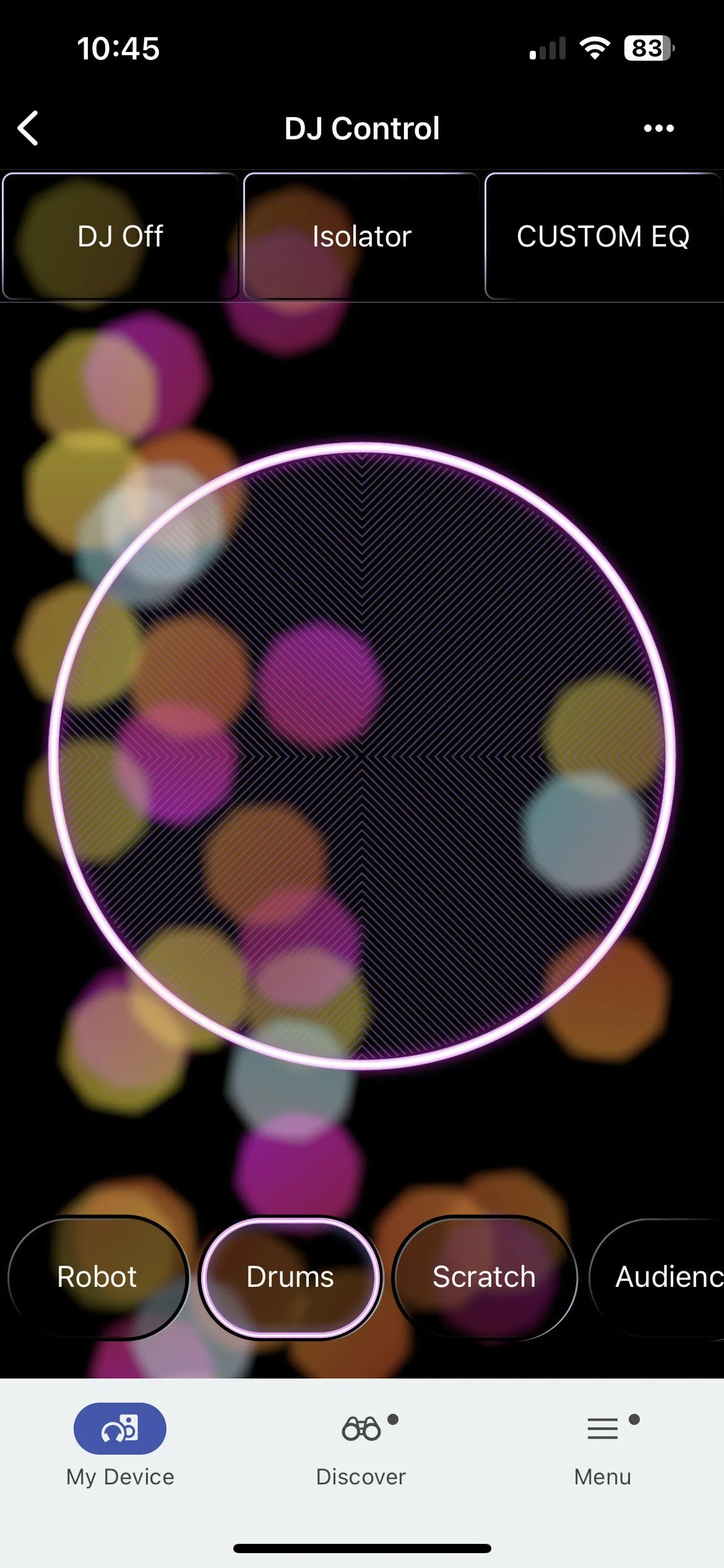 Kolejna sekcja to DJ Control, gdzie znajdziesz kilka efektów dźwiękowych, na przykład odgłosy publiczności, efekt scratch (dźwięk powstający podczas szybkiego przesuwania płyty winylowej przez DJ-a) i wiele innych. Intensywność efektu lekko się zmienia w zależności od tego, jak stukasz w ekran. Przy codziennym użytkowaniu większość osób raczej z nich nie skorzysta, ale na imprezie mogą dodać trochę urozmaicenia. Raczej jednak warto traktować tę funkcję z przymrużeniem oka.