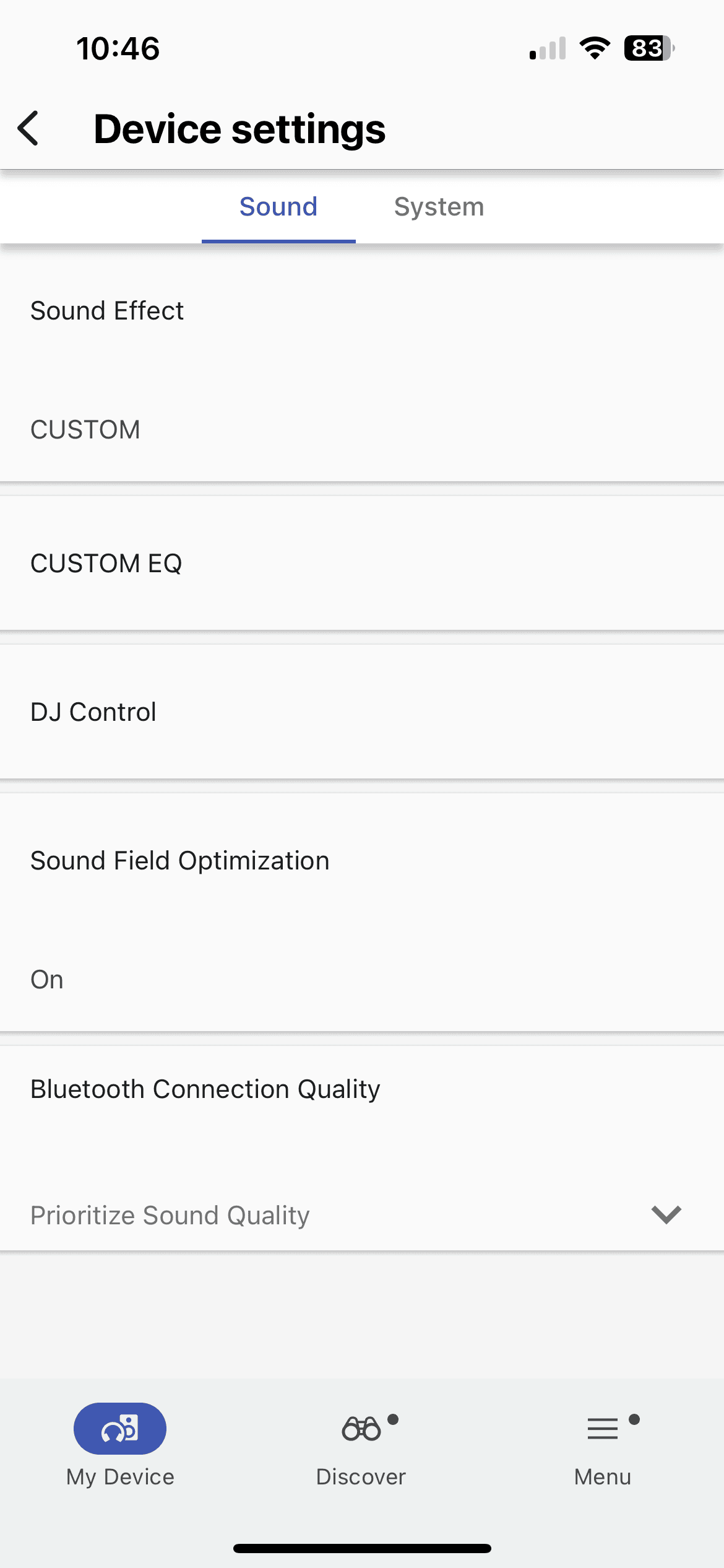 W tej sekcji znajdziesz także opcję ustawienia własnego equalizera. W porównaniu do aplikacji JBL nie ma tu gotowych presetów – musisz ustawić wszystko samodzielnie. Jak już wspomniałam, własnego equalizera nie da się połączyć z trybem ULT i nie zapewnia on takiej samej głębi basów.