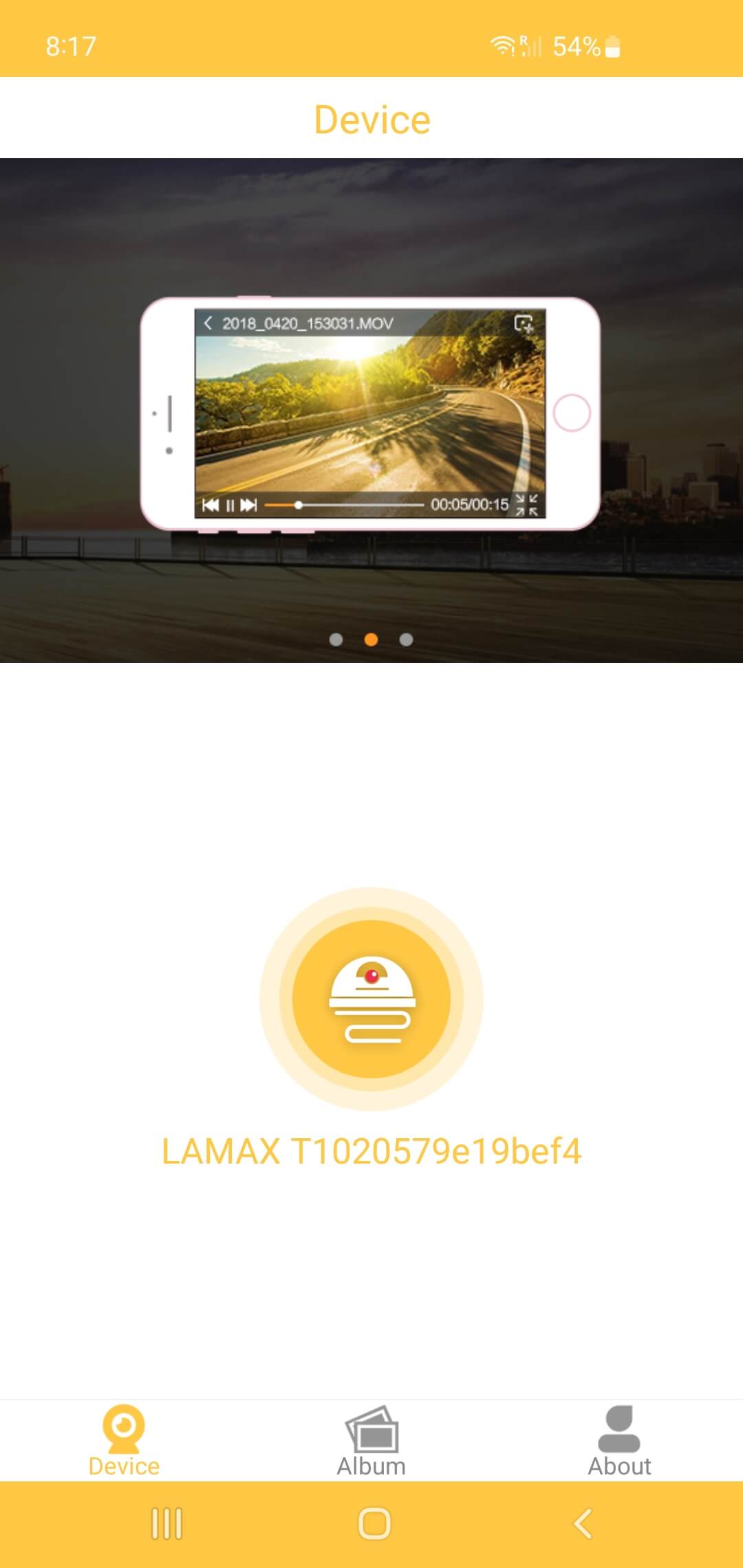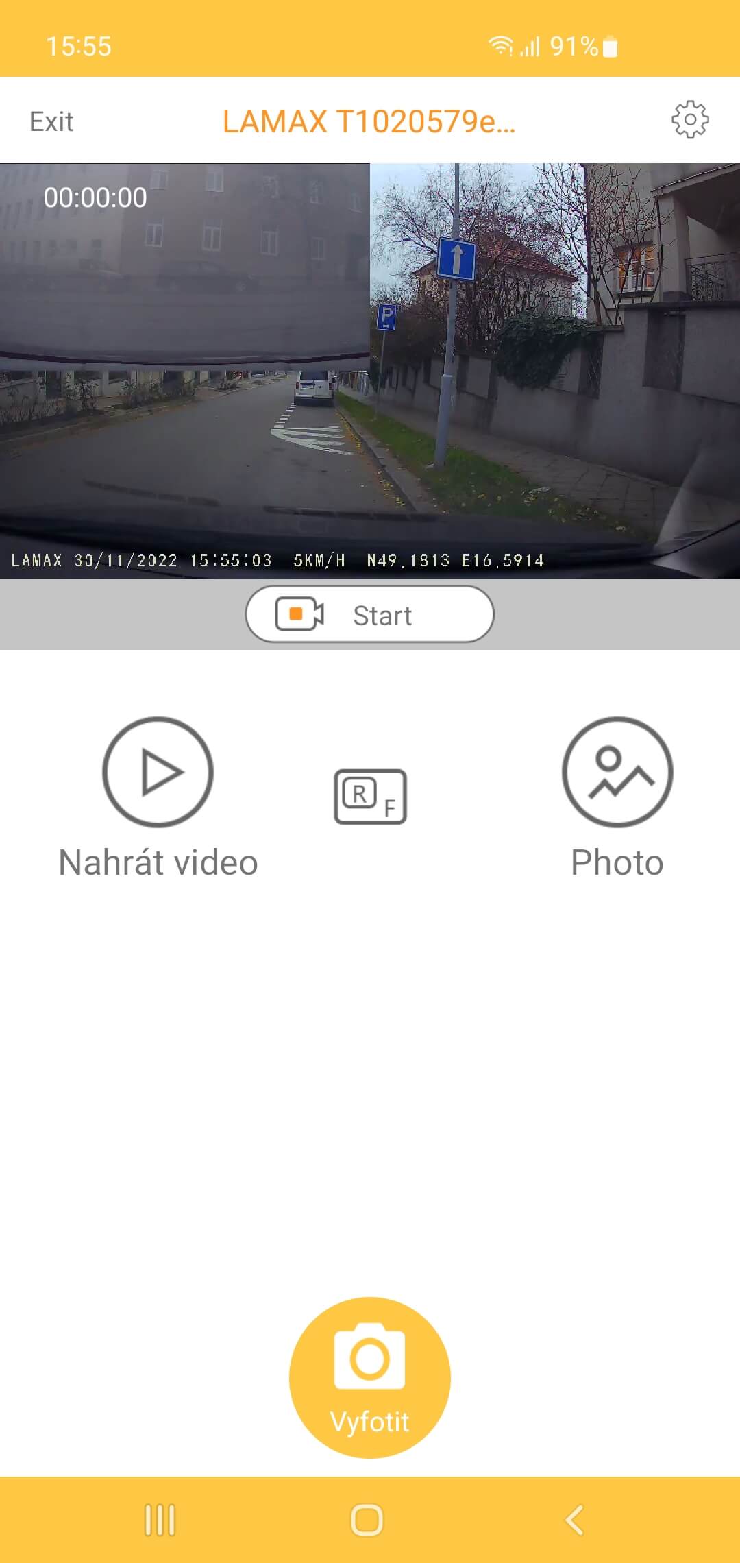 - Uruchom aplikację Roadcam i wybierz podłączoną kamerę samochodową.