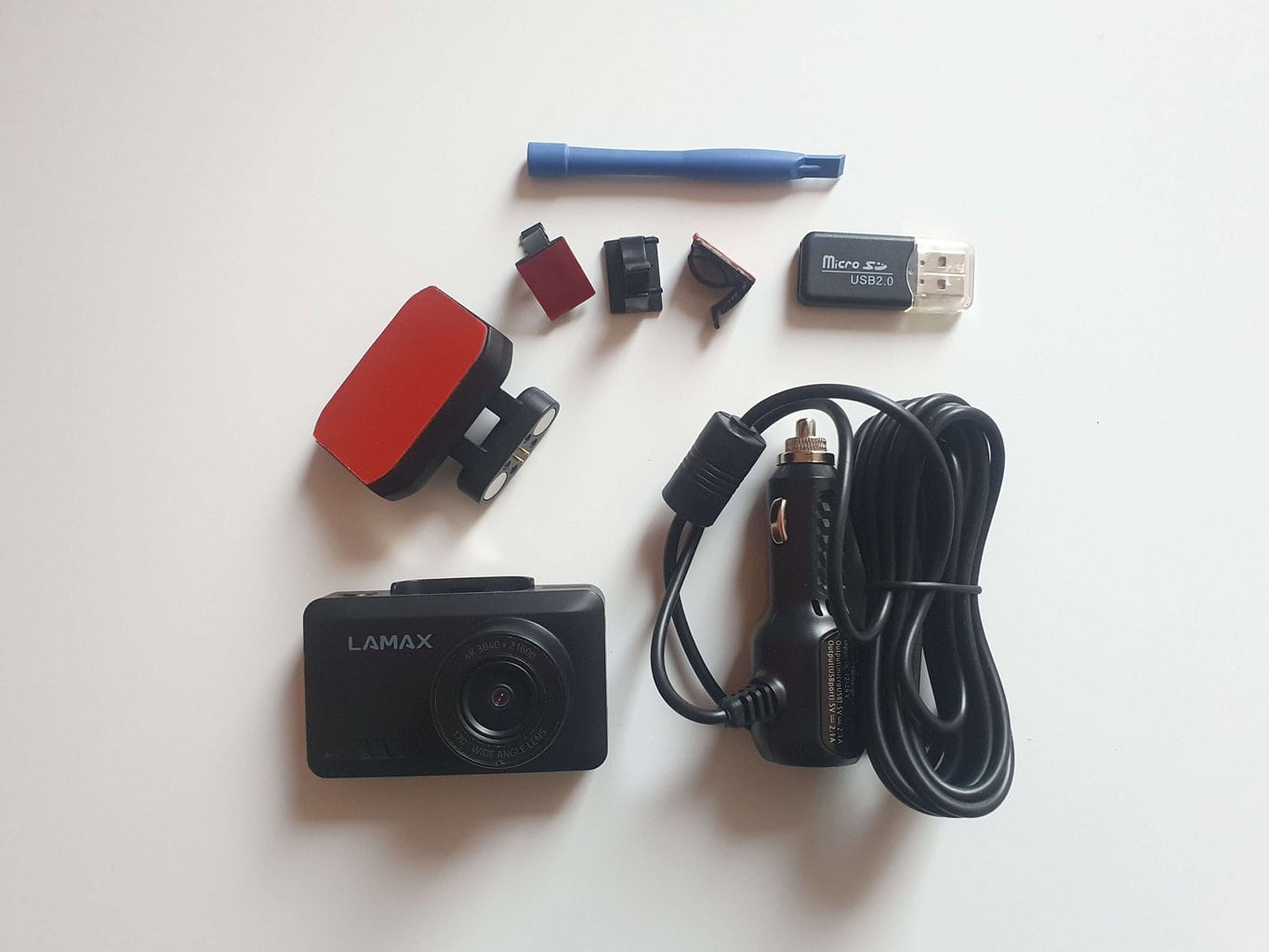 Opakowanie kamery samochodowej Lamax T10 4K GPS jest raczej surowe. Za głównego konkurenta tego modelu można uznać kamerę samochodową TrueCam M11 GPS 4K. Wynika to z ceny, wyglądu i podobnego zestawu funkcji. Jednak to zawartość opakowania jest czymś, czego te dwie kamery nie mają ze sobą wspólnego.
