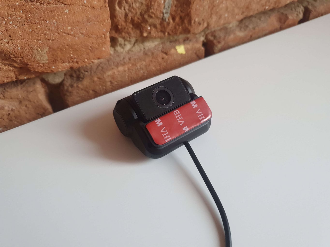Kabel zasilający zakończony jest złączem microUSB. Należy go włożyć do wejścia, które znajduje się na magnetycznym uchwycie z samoprzylepną powierzchnią. Uchwyt jest następnie umieszczany na kamerze samochodowej.