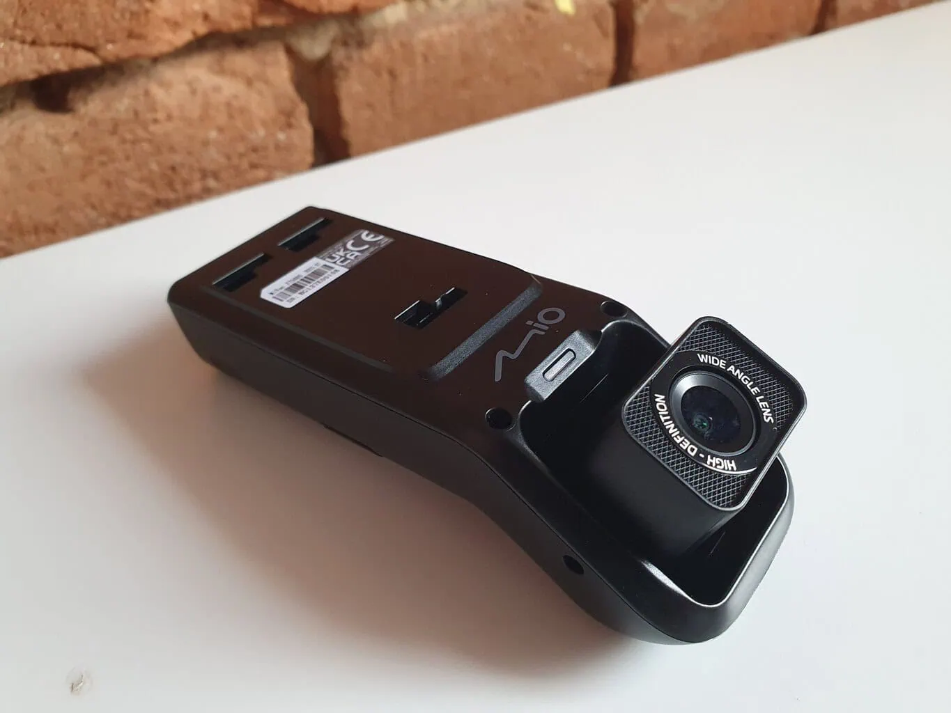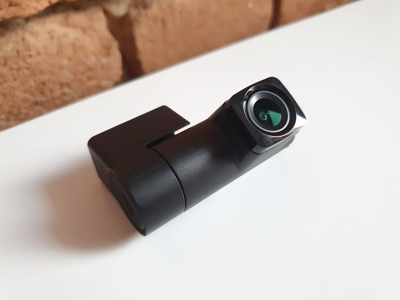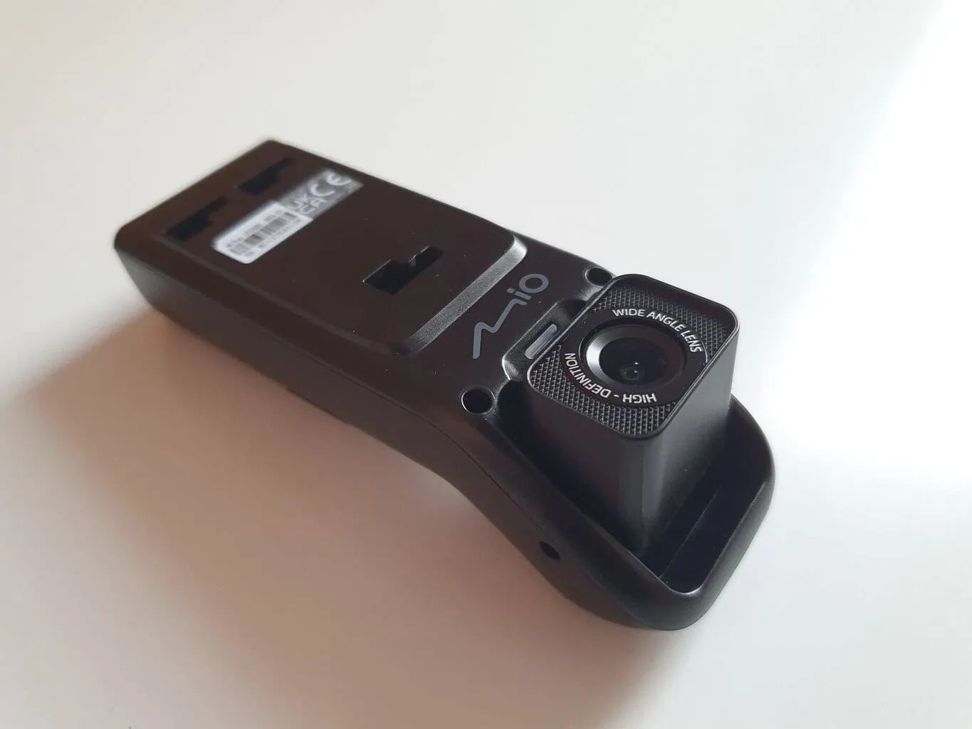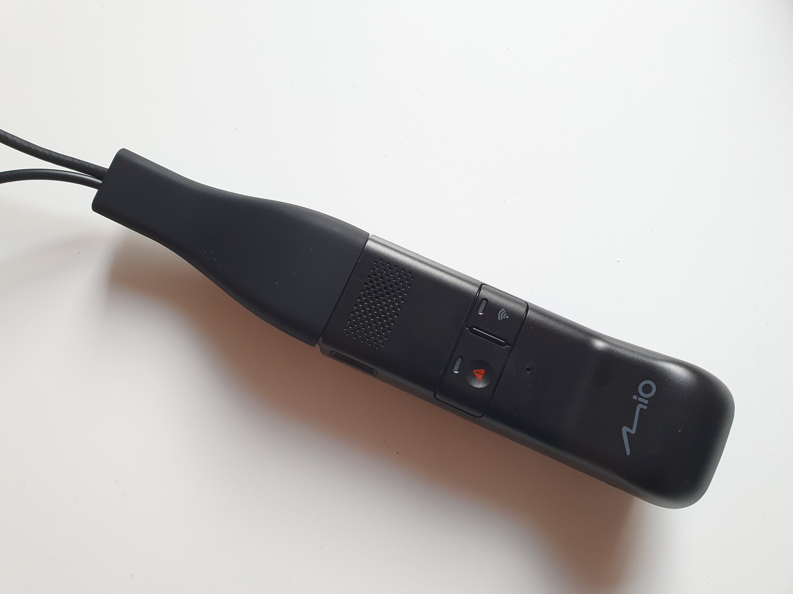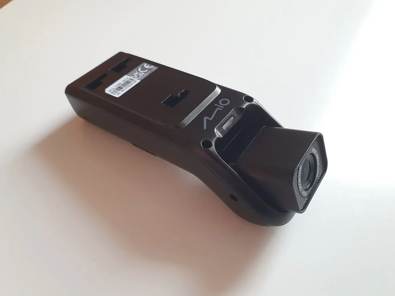 Kształt kamery samochodowej MiVue J756DS od razu mnie zaskoczył. Nie ma bowiem typowego designu kamery z wyświetlaczem. Zamiast tego ma wąski podłużny kształt, który na przedniej szybie nie będzie przeszkadzał. Przednia część jest wyposażona w obiektyw, który można pochylać tylko w pionie, podobnie jak w MiVue 955W z inną konstrukcją. Dzięki temu MiVue J756DS jest przeznaczona dla większości samochodów osobowych, ale także dla dostawczych czy ciężarowych.
