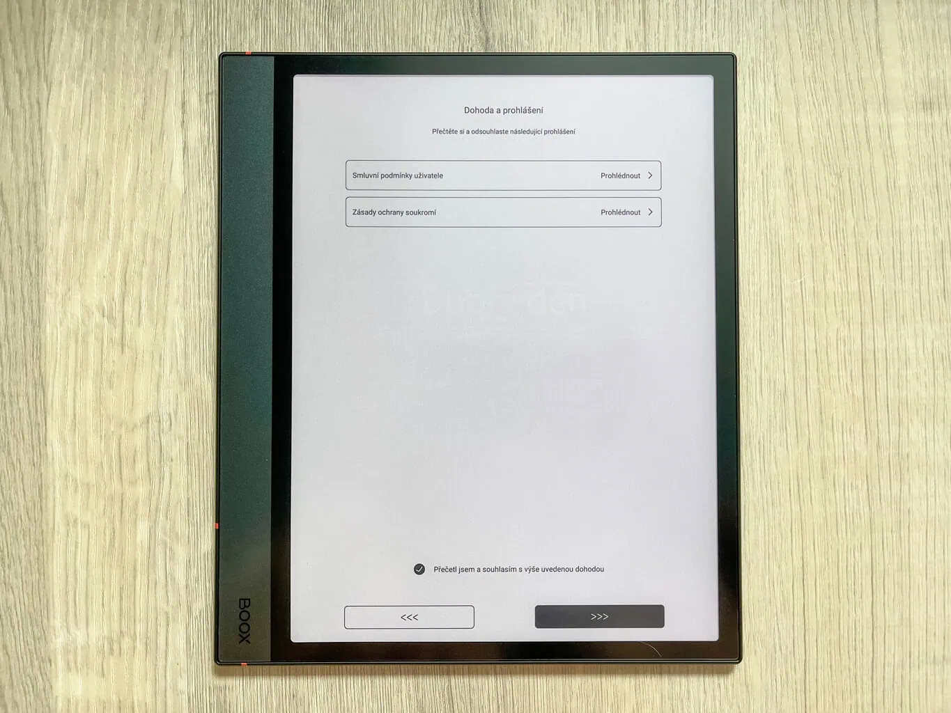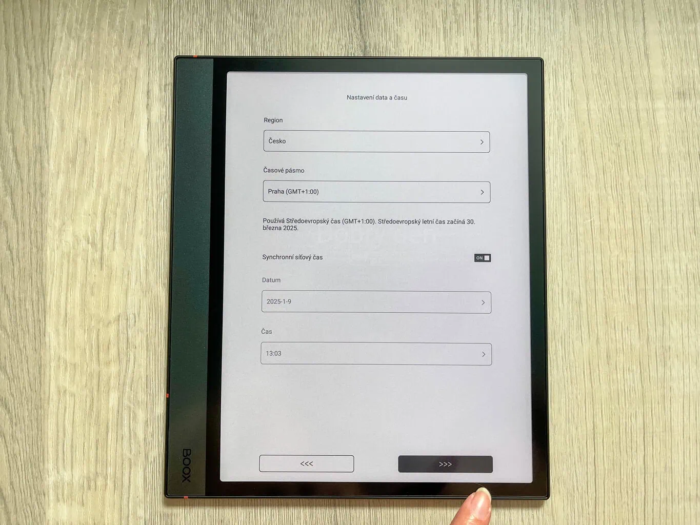 Uruchomienie cyfrowego notatnika jest dość szybkie i proste. Po rozpakowaniu urządzenia włączasz je, naciskając przycisk on/off. Następnie notatnik poprosi Cię o wybór języka oraz zaakceptowanie warunków umowy i polityki prywatności. Wybierasz strefę czasową i możesz ustawić, kiedy urządzenie ma się automatycznie wyłączyć.