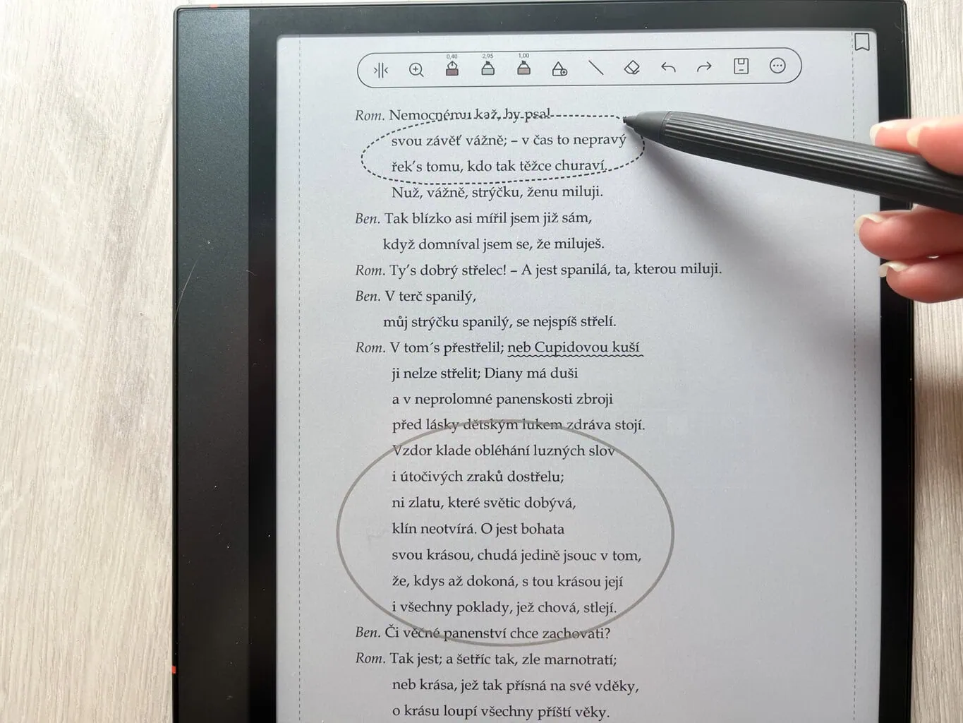 Mimo to muszę przyznać, że praca z reMarkable Paper Pro jest dla mnie jeszcze nieco przyjemniejsza i szybsza. Wrażenia z pisania jeszcze bardziej przypominają te, które mam podczas pisania na zwykłym papierze. Doceniam też znacznie lepszą reakcję urządzenia. Opóźnienia w ONYX BOOX NOTE 4 C często mnie frustrowały podczas pracy. Za zaletę uważam również większy ekran w reMarkable Paper Pro (choć rozumiem, że niektórzy mogą preferować mniejsze urządzenia).