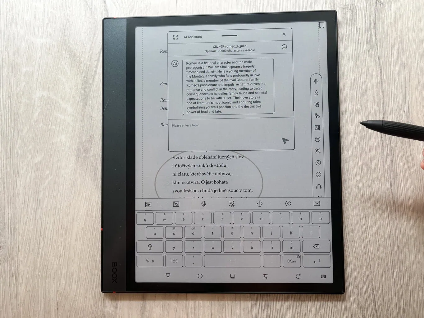 W porównaniu do poprzedniej generacji zainteresowała mnie możliwość korzystania z AI bezpośrednio w notatniku. Sztuczną inteligencję można zapytać o dowolne informacje (na przykład o daną książkę). AI Assistant jest dostępny w notatniku również jako osobna aplikacja.