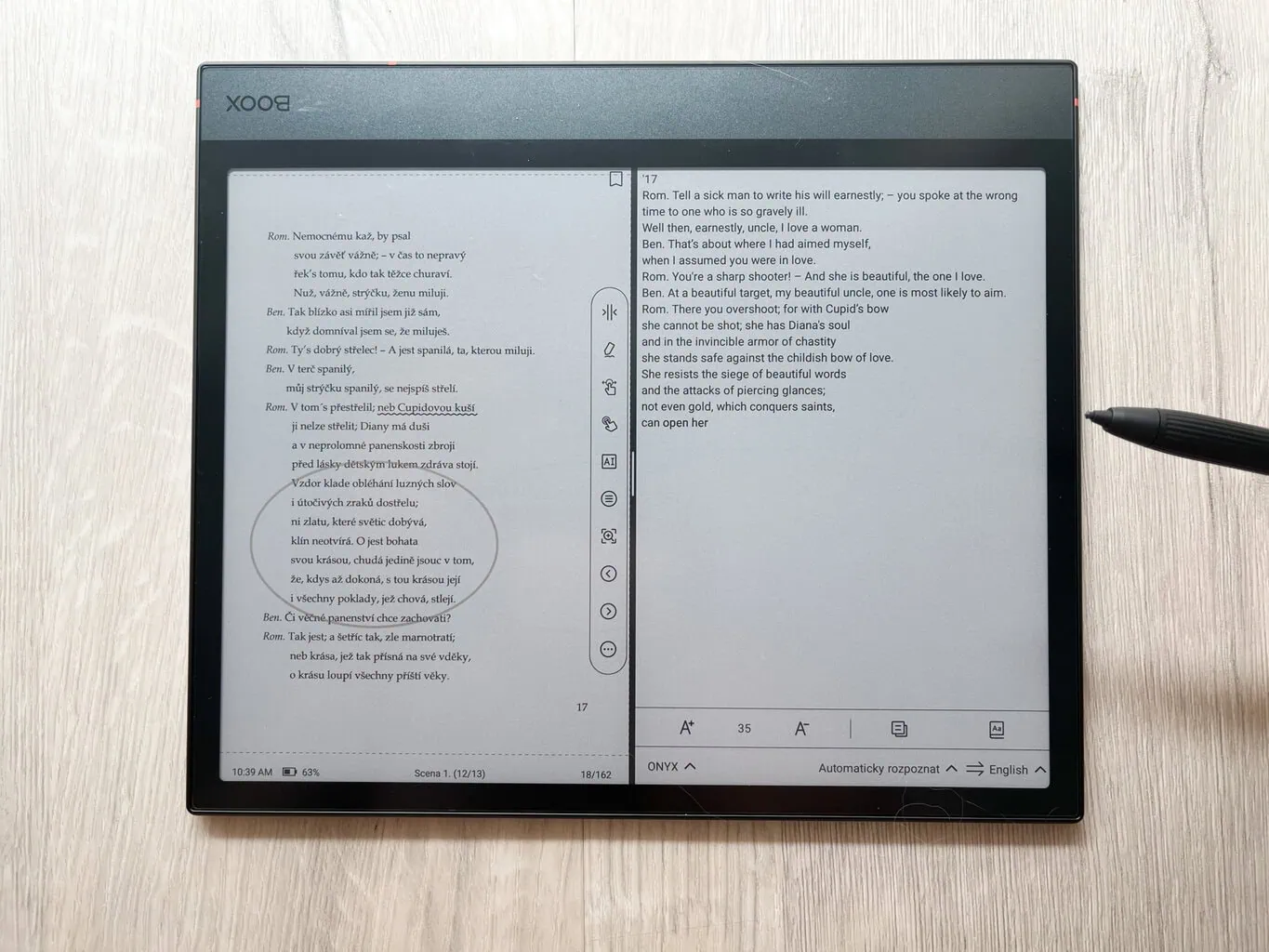 - BOOX Drop: Niestety, podobnie jak wspominałam przy ONYX BOOX NOTE AIR 3 C, po uruchomieniu tej funkcji pojawia się jedynie ciąg chińskich znaków i nie udało mi się jej uruchomić.