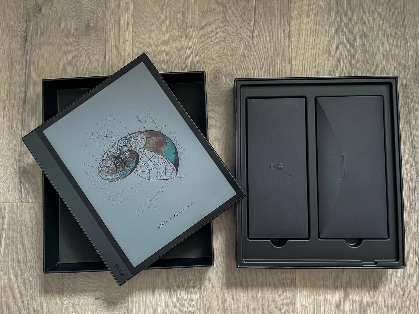 Cyfrowy notatnik i czytnik książek ONYX BOOX NOTE 4 C sprzedawany jest w designerskim opakowaniu, które – podobnie jak u poprzednika – dopracowano do perfekcji. W środku znajdziesz wszystko starannie uporządkowane, a samo rozpakowywanie przypomina doświadczenie znane z produktów Apple.