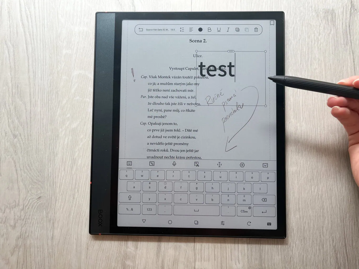 Urządzenie obsługuje także automatyczne usuwanie słowa po jego ręcznym przekreśleniu. Z mojego testu wynika jednak, że podczas przekreślania trzeba być dokładnym. Zazwyczaj jedno przekreślenie nie wystarczy – trzeba powtórzyć je kilka razy. Jeśli ta funkcja Ci nie odpowiada, możesz ją wyłączyć.