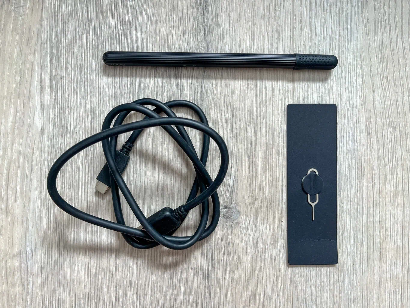 W opakowaniu, oprócz samego notatnika, znajdziesz stylus z osłoną, kabel zasilający z końcówką USB-C, igłę do wysuwania adaptera na kartę microSD oraz niezbędną dokumentację.