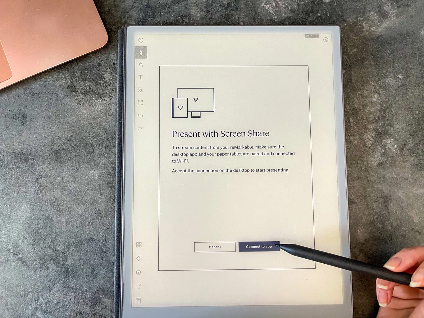 Do korzystania z tej funkcji wymagana jest aplikacja reMarkable zainstalowana na komputerze. Jednocześnie notatnik i komputer muszą być podłączone do tej samej sieci Wi-Fi. W ten sposób da się wyświetlić aktualnie otwarty dokument lub notatkę z notatnika na komputerze. Wszystko działa niezwykle płynnie. Ta funkcja jest zdecydowanie przydatna, na przykład wówczas, gdy chcemy coś wyjaśnić lub pokazać naszym współpracownikom.