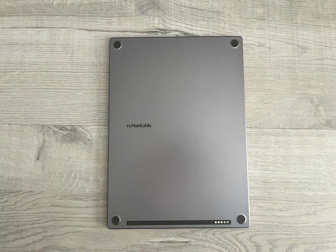 Jeśli chodzi o zastosowane materiały, to po raz kolejny mamy do czynienia z elegancką metalową ramą, która zapewnia niezbędną wytrzymałość. Metal znalazł się także z tyłu urządzenia (zastąpił plastik). Są też wspomniane wcześniej cztery lekko wystające nóżki, które sprawiają, że notatnik stabilnie leży na biurku i nie ma tendencji do przesuwania się podczas pisania.