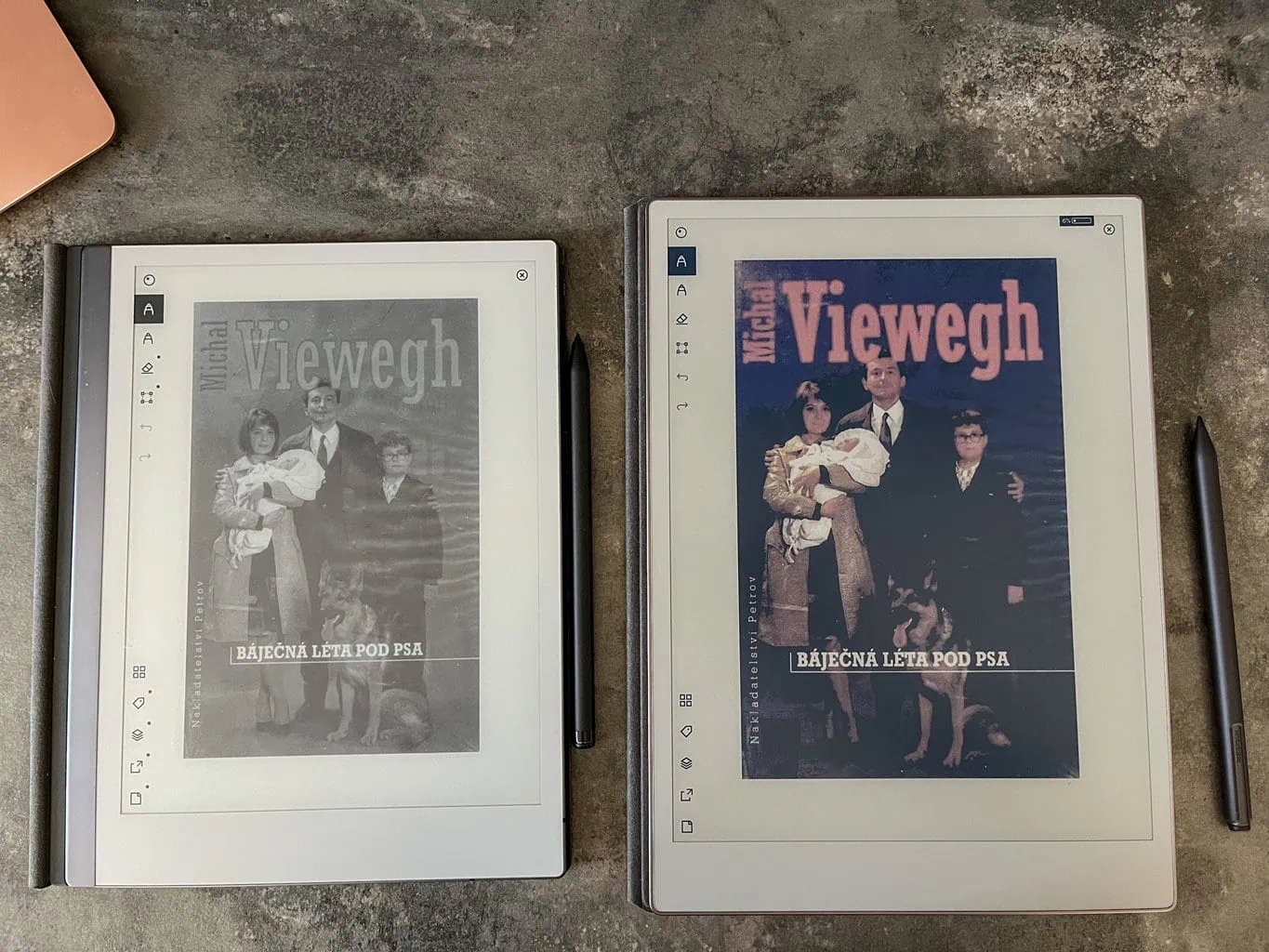 Na poniższych zdjęciach możesz zobaczyć notatniki reMarkable 2 i Paper Pro obok siebie. Już na pierwszy rzut oka widać, że reMarkable 2 jest zauważalnie lżejszy od Paper Pro. Z wyłączonym podświetleniem kolory na reMarkable 2 są bardziej kontrastowe w warunkach dziennych, co jest pewną niedogodnością. Jednak jego pozostałe zalety przeważają nad tym niedociągnięciem.