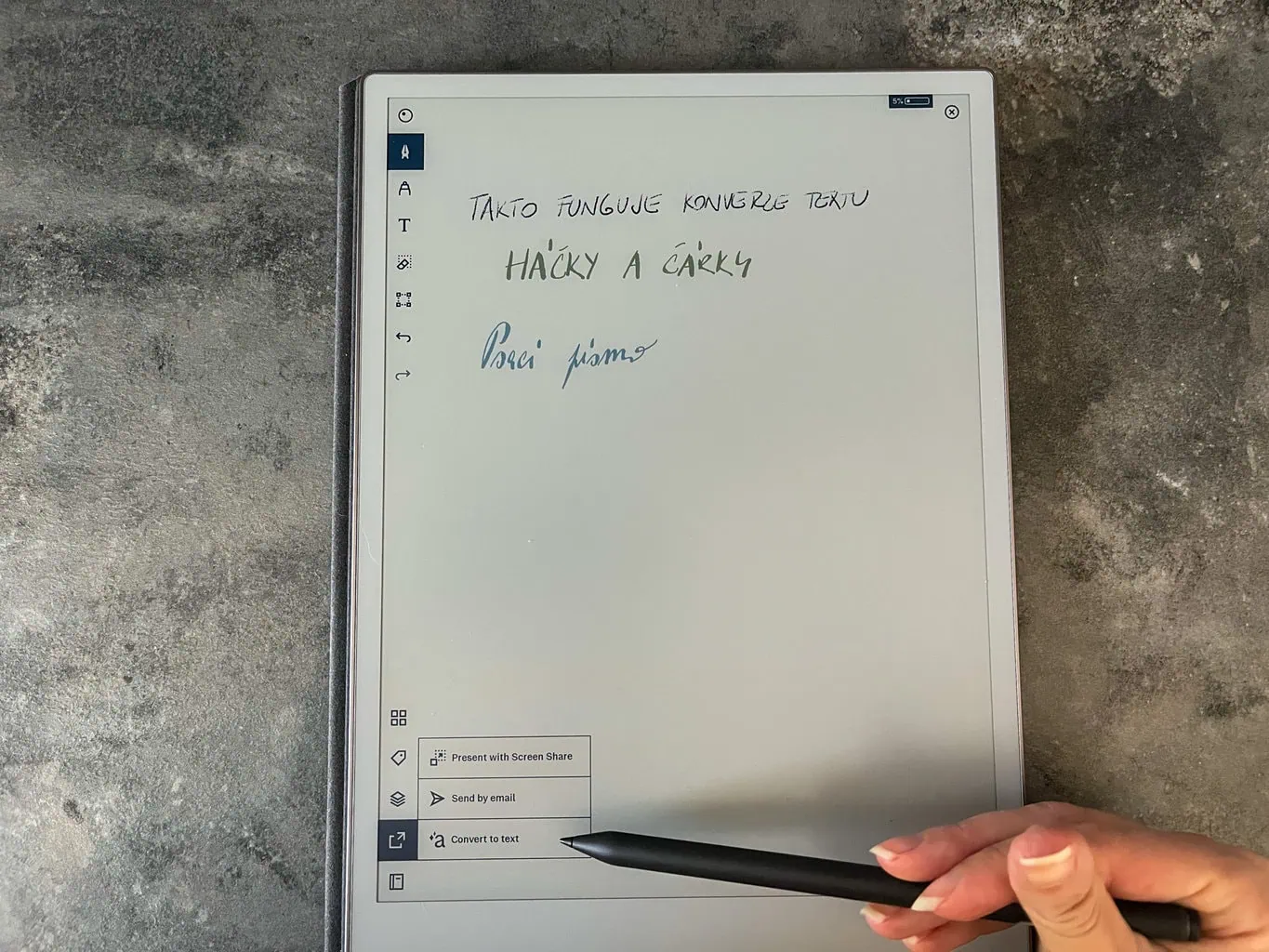 Ogromną zaletą notatników reMarkable jest ich zdolność do obsługi konwersji tekstu. Notatnik rozpoznaje odręczne pismo, nawet jeśli nie jest ono zbyt wyraźne czy zapisane w sposób kaligraficzny. Obsługuje on również rozróżnianie wielkości liter. Można pisać zarówno drukowanymi literami, jak i starannym pismem kaligraficznym. Urządzenie doskonale rozpoznaje znaki diakrytyczne, dzięki czemu radzi sobie również z polskim tekstem.