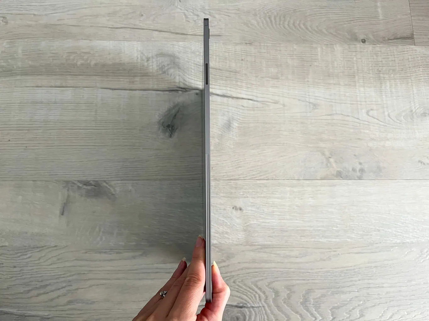 To, co zdecydowanie wyróżnia reMarkable, to jakość wykonania. Całość sprawia wrażenie naprawdę luksusoweo urządzenia. W oczy od razu rzuca się bardzo cienka obudowa, która jest nieco grubsza niż w reMarkable 2. Zamiast 4,7 mm grubość wynosi 5,1 mm, ale różnica ta nie jest zauważalna. Jednocześnie nowszy model urządzenia ma trochę większy rozmiar. Wymiary reMarkable 2 wynoszą 246 × 188 mm, a wariant Paper Pro ma 274,1 × 196,6 mm. Również waga urządzenia jest nieco większa i wynosi 525 gramów, ale osobiście nie zauważyłam, aby notatnik jakoś specjalnie ciążył mi podczas noszenia go w torebce.