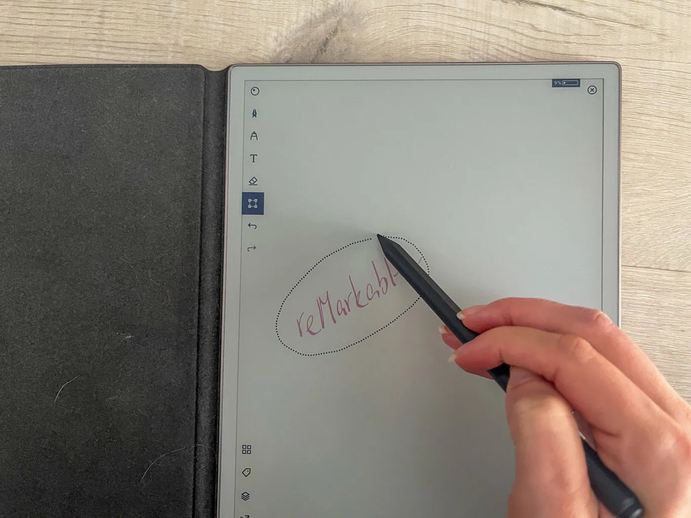 Wraz z aktualizacją oprogramowania 3.17, reMarkable Paper obsługuje automatyczne tworzenie kilku podstawowych kształtów. Jeśli ręcznie narysujesz na przykład kwadrat i na końcu przytrzymasz linię przez sekundę, ręcznie narysowany kwadrat stanie się idealnym obiektem. W przypadku utworzonych kształtów można oczywiście łatwo zmieniać rozmiar, obracać je lub przenosić w obrębie dokumentu.