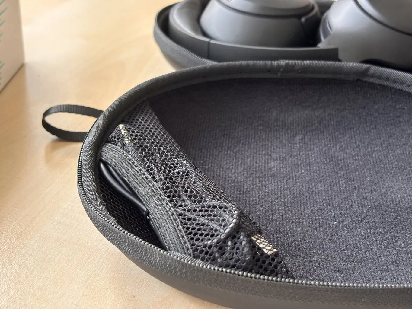 Słuchawki bez wątpienia zasługują na pochwałę za dodanie do zestawu wytrzymałego etui podróżnego. Wewnątrz wszyto bardzo przydatną siateczkową kieszonkę, do której można włożyć np. przewód zasilający. Etui w zestawie nie posiada np. konkurencyjny model Sony WH-CH720N.