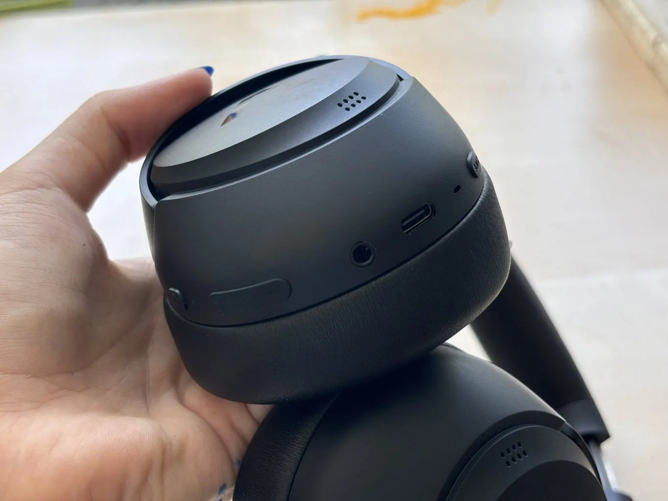 Wadą może być brak aplikacji mobilnej, co wiąże się z niedostępnością niektórych funkcji (takich jak Znajdź słuchawki lub korektor dźwięku). Wbudowany mikrofon również mógłby być lepszy, chociaż jak na swoją cenę sprawuje się całkiem przyzwoicie. Mój ostatni zarzut to waga słuchawek, choć nie jest ona ekstremalnie wysoka. Podczas dłuższego noszenia czułam jednak, że słuchawki są dla mnie nieco za ciężkie.