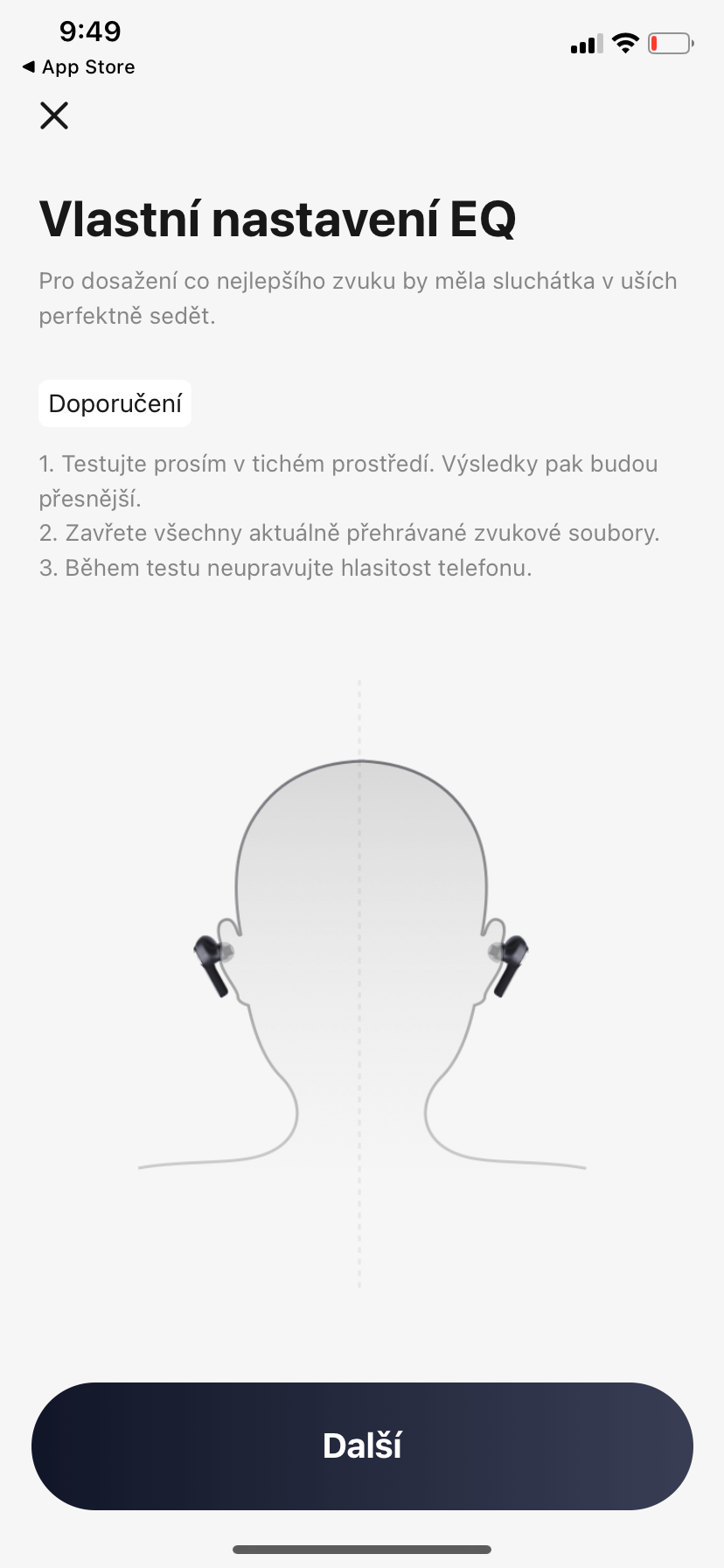 Alternatywnie można również dostosować dźwięk do własnych upodobań, testując minimalny i maksymalny zakres słyszalności. Aplikacja prowadzi użytkownika przez cały test.