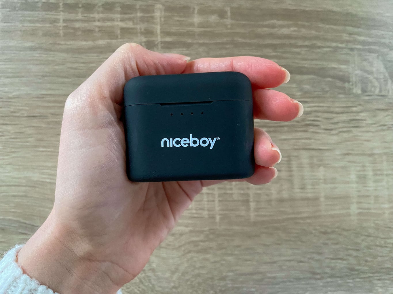 Niceboy HIVE Podsie 3 to słuchawki True Wireless, które są idealnym towarzyszem podróży ze względu na swój rozmiar i wygodną wagę. Obudowa słuchawek z możliwością ładowania ma wymiary 5,5 × 4,5 × 2 cm (mieści się w dłoni), a całkowita waga wynosi zaledwie 38 gramów. Można je więc z łatwością umieścić nie tylko w plecaku czy torebce, ale także w kieszeni.