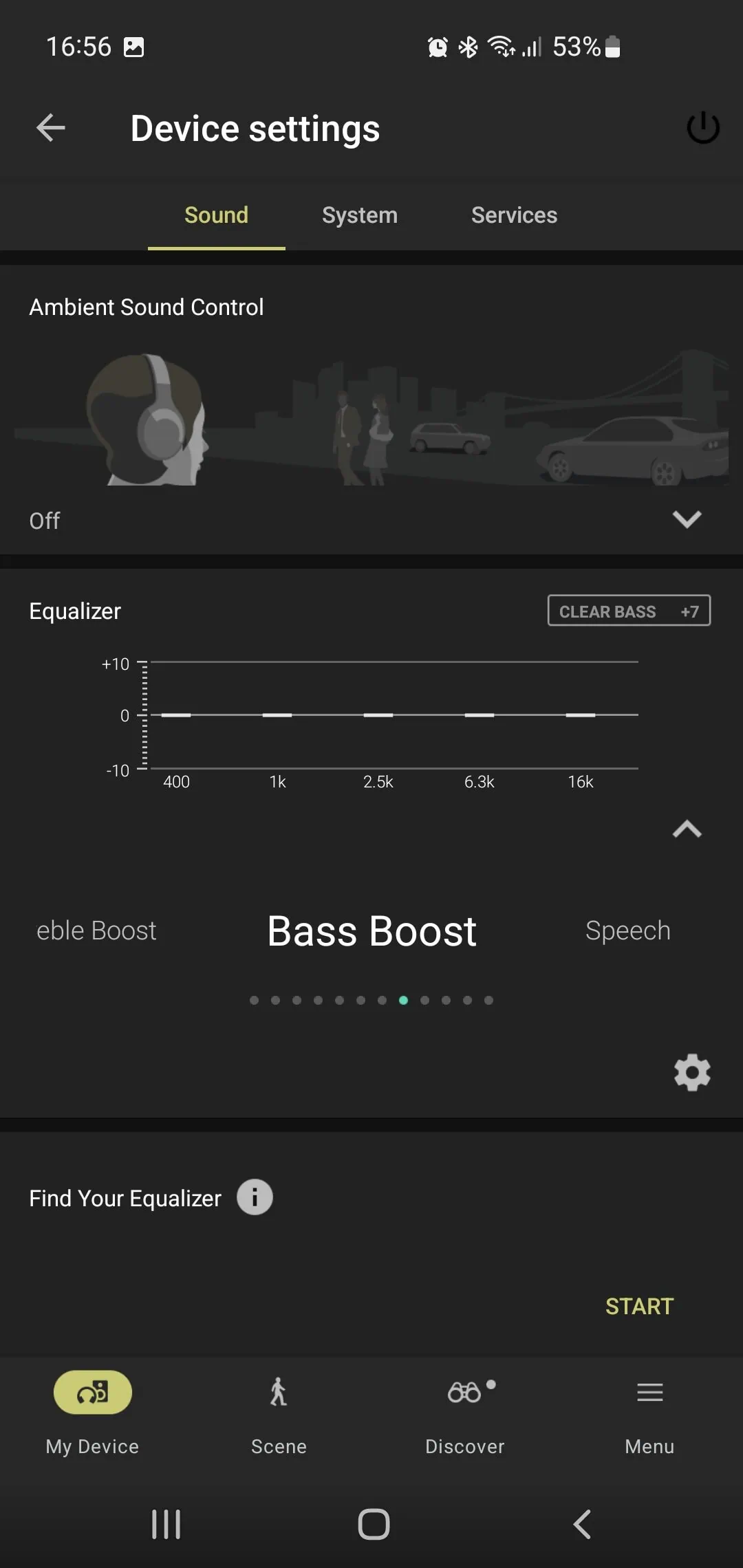Oprócz ręcznego ustawiania i możliwości zapisania kilku własnych profili, dostępne są także gotowe tryby dopasowane do różnych gatunków muzycznych lub preferencji. Nie zabrakło również funkcji Clear Bass, która jeszcze mocniej podkreśla basy, nie zagłuszając przy tym pozostałych częstotliwości. Jeśli nie masz doświadczenia z ustawianiem własnego equalizera, możesz skorzystać z przewodnika Find Your Equalizer.