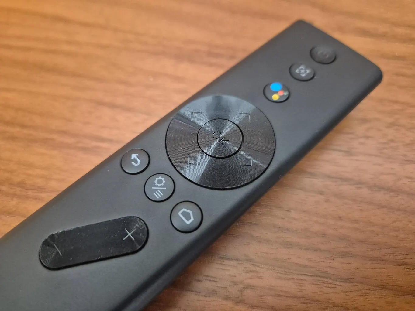 Pilot oferuje tutaj tylko podstawowe funkcje. Najważniejszy jest oczywiście krzyżak kierunkowy ze środkowym przyciskiem do zatwierdzania wyboru, któremu towarzyszą przyciski Wstecz i Strona główna. Nie zabrakło szybkiego przejścia do ustawień (lub otwarcia menu kontekstowego), sterowania głosowego oraz regulacji głośności.
