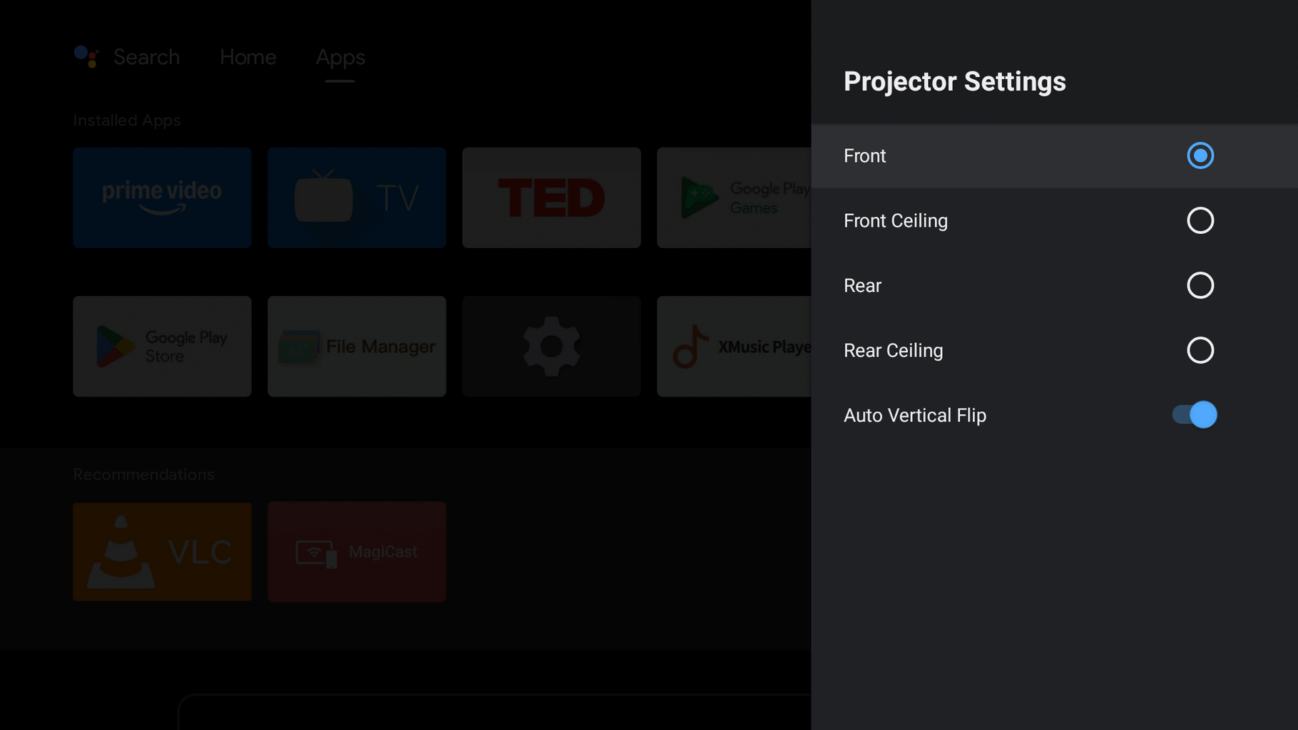 Ponieważ jest to projektor z Androidem, a nie z Google TV, niestety brakuje tu przycisków do szybkiego uruchamiania aplikacji streamingowych. Niezależnie czy chodzi o YouTube, Prime Video czy nawet ręcznie instalowany Netflix, wszystkie aplikacje trzeba uruchamiać z ekranu głównego Androida. To spory minus, bo osobiście bardzo szybko przyzwyczaiłem się do dedykowanych przycisków poszczególnych usług na wszystkich telewizorach i projektorach.