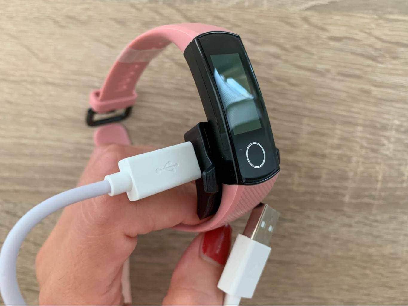 Uruchomienie bransoletki zdecydowanie nie jest trudne. W dołączonej instrukcji obsługi znajdziesz również prostą procedurę obrazkową. Najpierw należy naładować opaskę za pomocą dołączonego uchwytu i kabla.