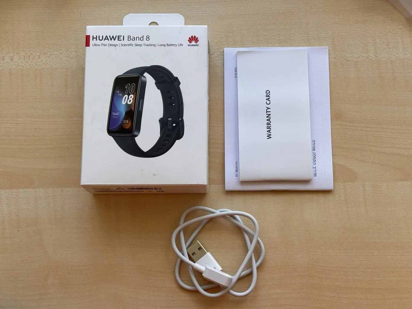 Na pierwszy rzut oka zawartość opakowania oraz sama opaska nie różni się zbytnio od poprzedniego modelu Huawei Band 7, który również posiadał obudowę wykonaną z wytrzymałych materiałów polimerowych. Kabel zasilający i tym razem jest zakończony magnetyczną końcówką i złączem USB-A.