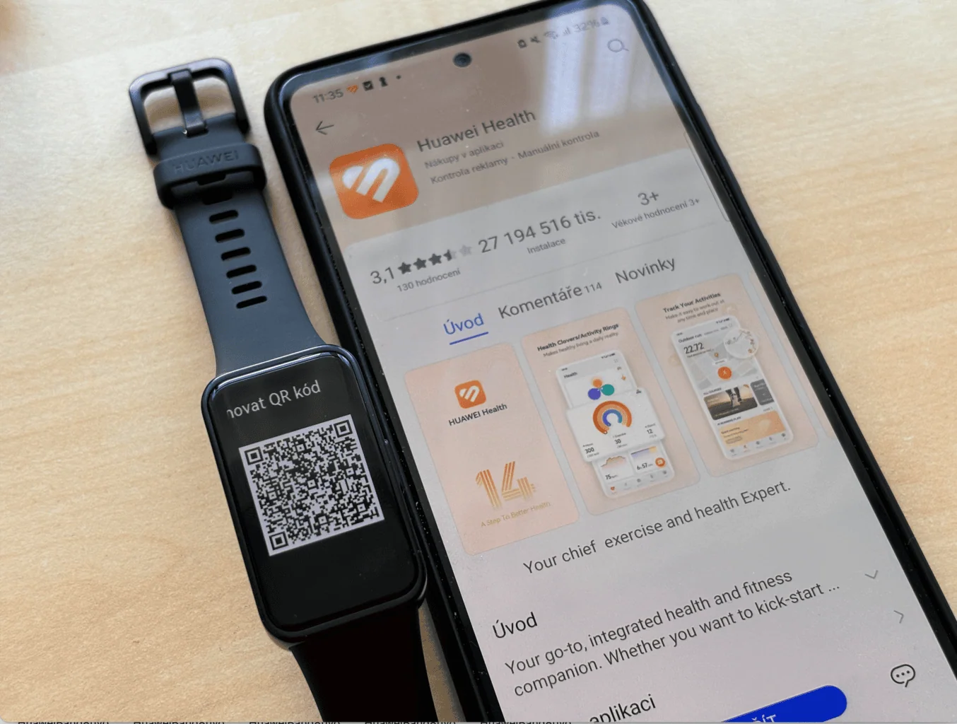 Parowanie telefonu komórkowego z opaską jest łatwe. Po naładowaniu należy wybrać domyślny język w ustawieniach opaski i pobrać na telefon aplikację Huawei Health, aby utworzyć konto Huawei ID, jeśli jeszcze go nie masz. Aplikację można znaleźć w App Store, ale została ona usunięta z Google Play. W przypadku sparowania z telefonem z Androidem, kod QR na opasce przekieruje użytkownika do własnej, niezabezpieczonej witryny. Dlatego lepiej jest najpierw pobrać aplikację Huawei App Gallery, za pośrednictwem której można ściągnąć potrzebną aplikację.