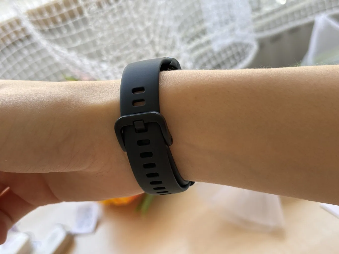 Silikonowy pasek wygodnie leży na ręce nie uwiera, co więcej, można go łatwo odpiąć. W przypadku zakupu kolejnego można je po prostu zmieniać w zależności od nastroju. Ponadto paski różowej i zielonej opaski są nieco krótsze (dla nadgarstka o obwodzie od 12 do 19 cm) niż czarnej bransoletki (dla nadgarstka o obwodzie od 13 do 21 cm).
