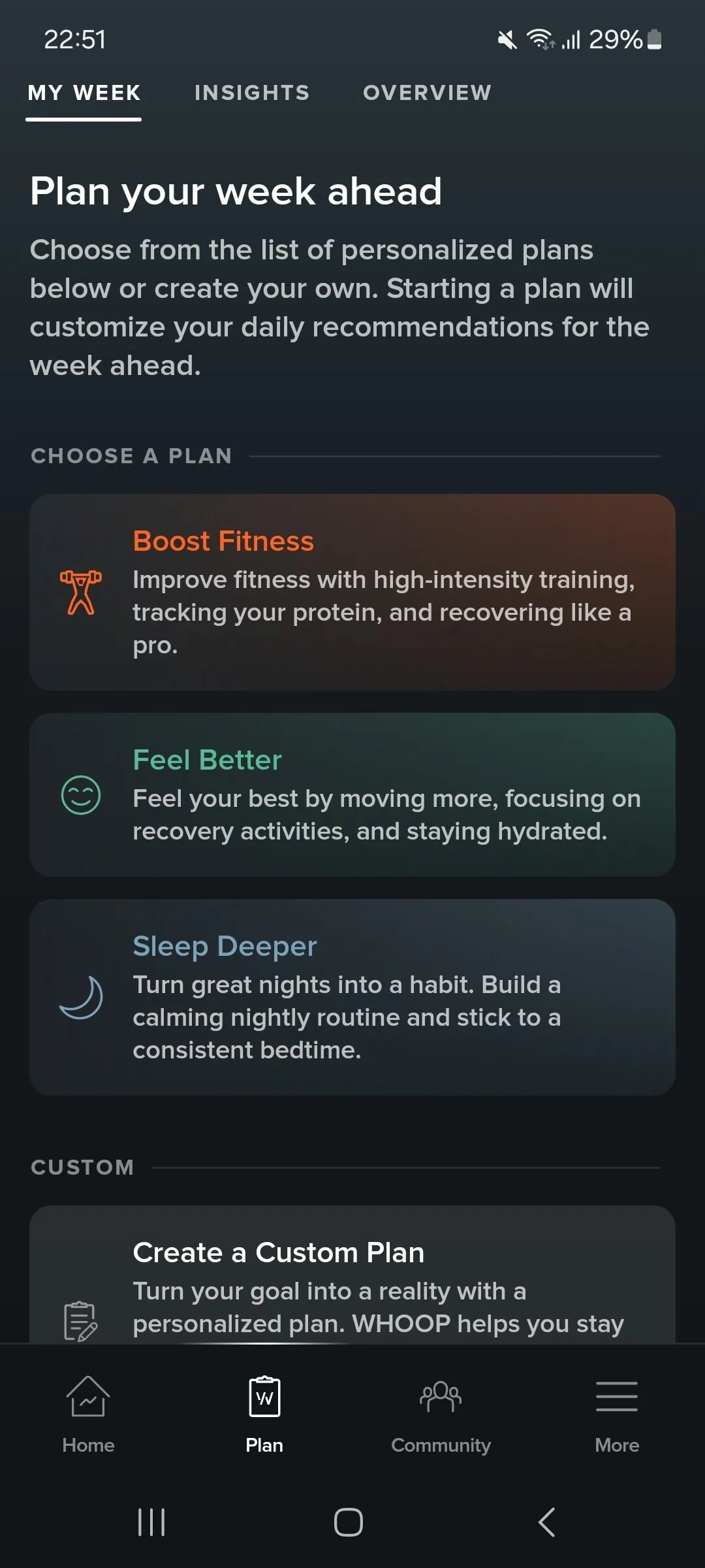 Możliwości personalizacji własnego planu to jedna z najmocniejszych stron tego urządzenia. WHOOP w tym aspekcie zdecydowanie przewyższa większość smartwatchy i innej elektroniki noszonej dostępnej na rynku. Tworzenie planu jest intuicyjne, przejrzyste, a samo śledzenie postępów naprawdę wciąga. Dużym atutem jest czytelna informacja zwrotna, którą zrozumie praktycznie każdy użytkownik. Zielone liczby i pochwały ze strony aplikacji lub asystenta AI to także niezawodne paliwo dla naszego wewnętrznego systemu nagród.