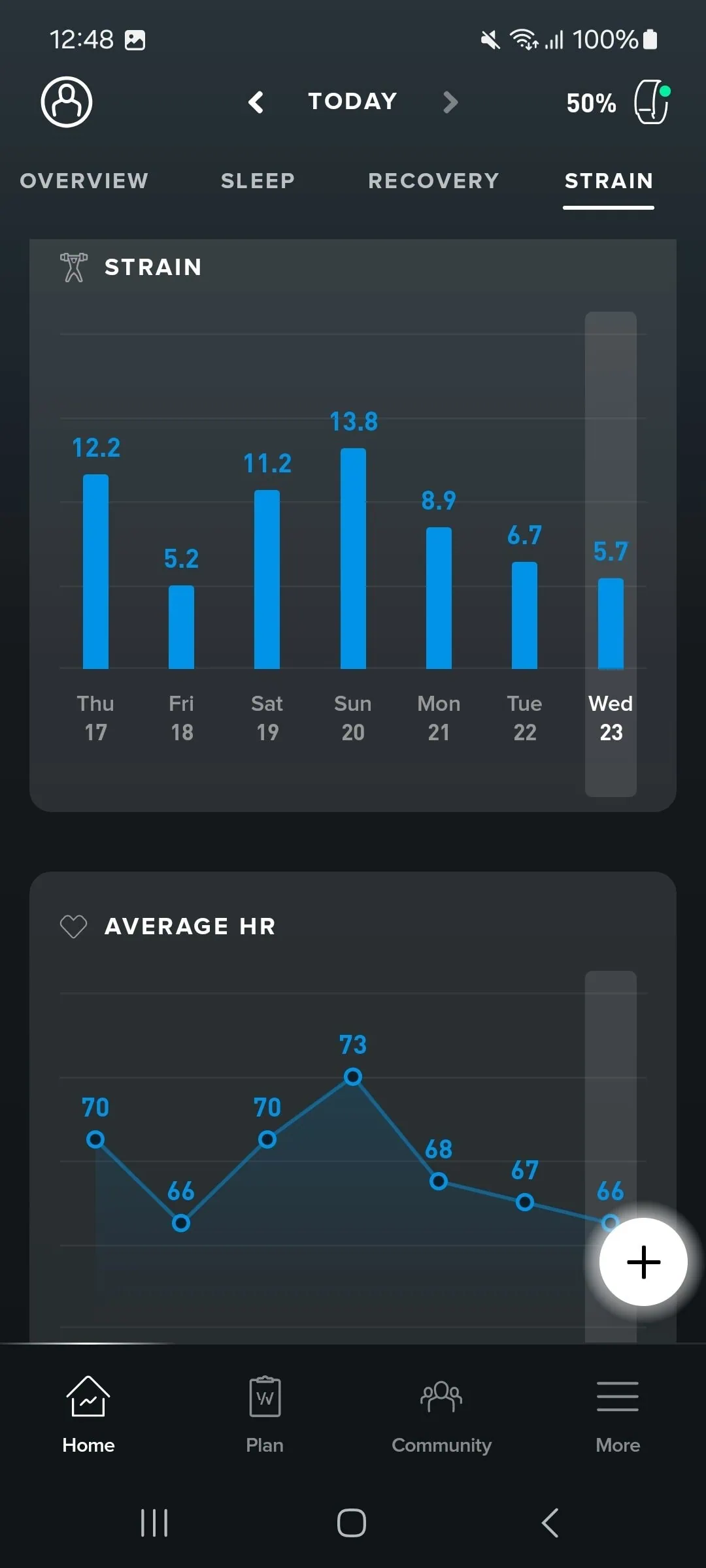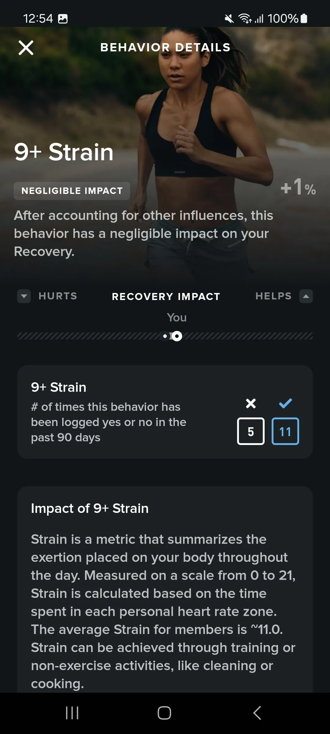 Na rekomendowaną intensywność wysiłku wpływają Twoje nawyki treningowe, podstawowe dane biometryczne (waga, wzrost, wiek – podawane podczas rejestracji) oraz jakość regeneracji. Osoba regularnie trenująca i dobrze regenerująca się otrzyma wyższą rekomendowaną wartość metryki niż amator, który dopiero zaczyna interesować się zdrowym stylem życia. WHOOP potrafi świetnie dopasować się do użytkownika, co bardzo mi się podoba.